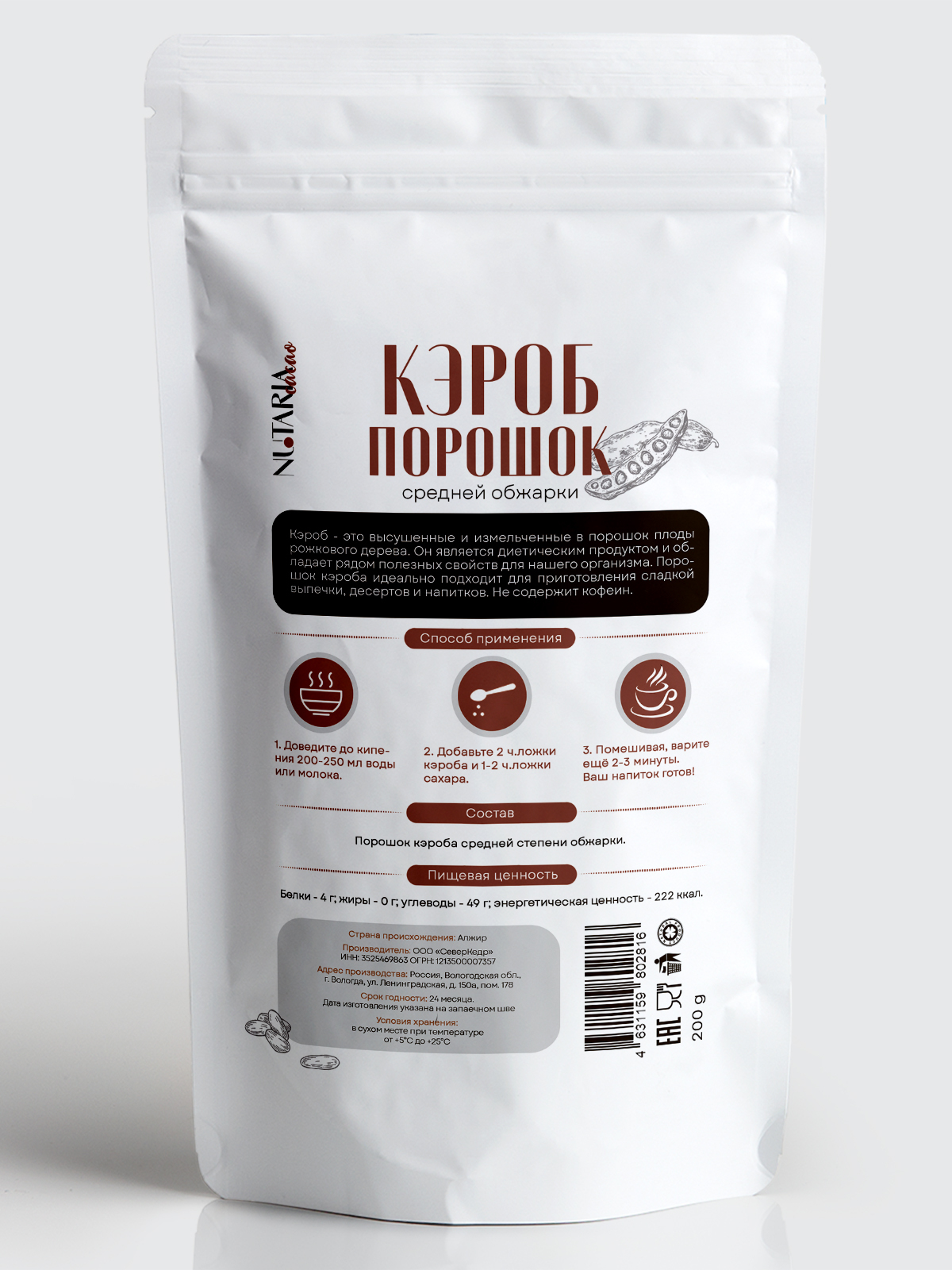 Кэроб порошок средней обжарки (натуральный, растворимый, для шоколада), 200 грамм