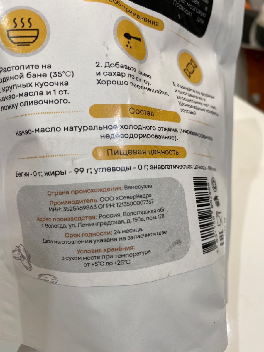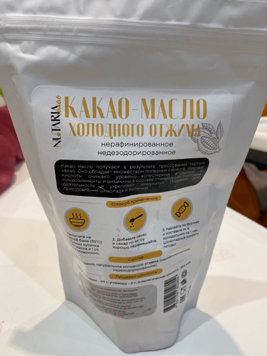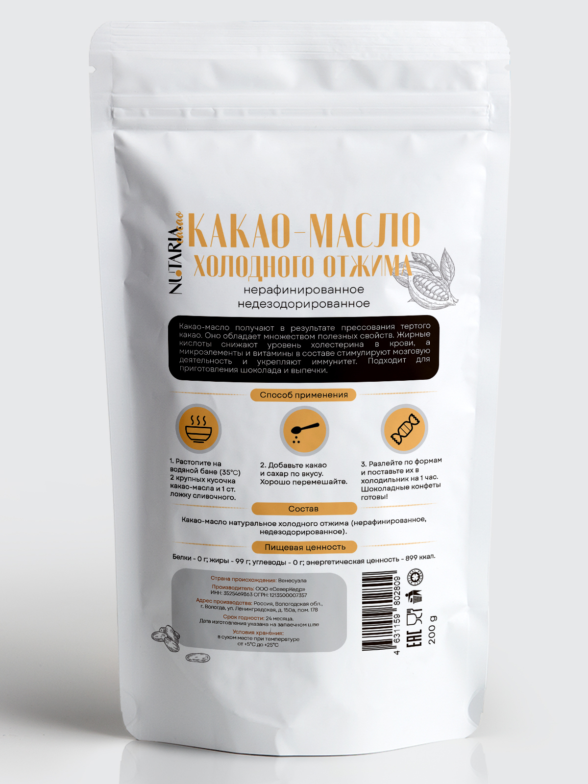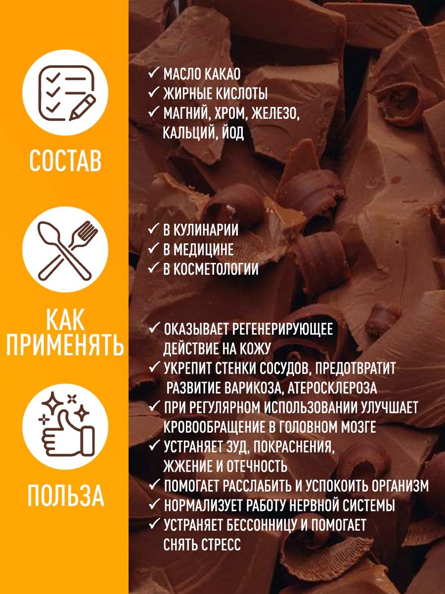 Масло какао, натуральное, нерафинированное, косметическое, пищевое, масло для губ 200 грамм