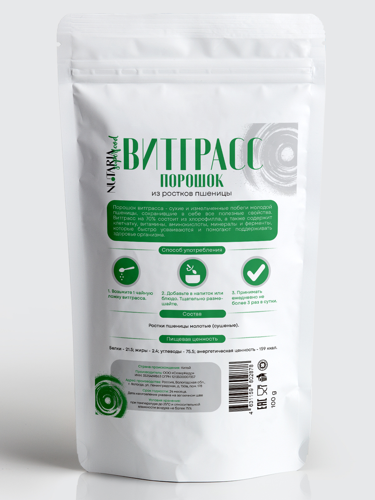 Витграсс порошок, детокс для похудения, пшеница для проращивания, ростки пшеницы, 100 грамм