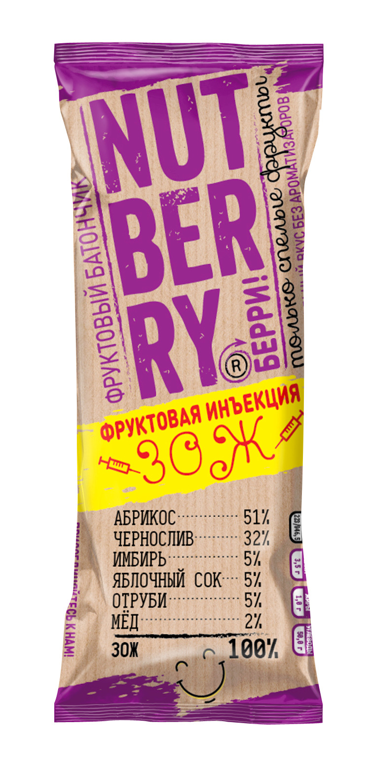 Nutberry Фруктовый батончик абрикос яблоко, 30 г