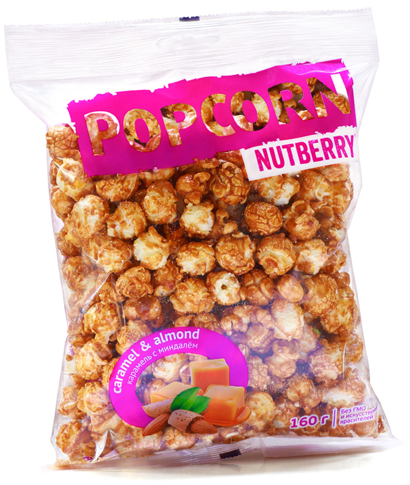 Nutberry попкорн сладкий карамель с миндалем, 160 г