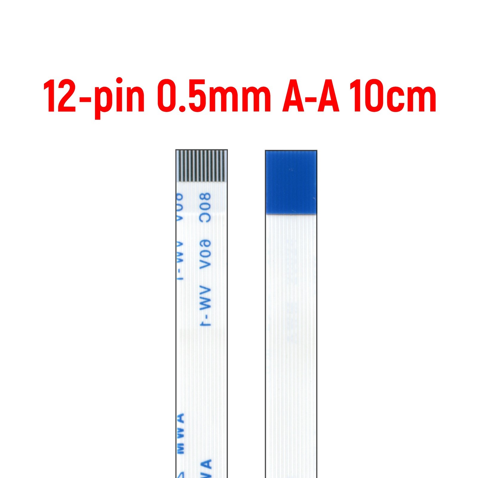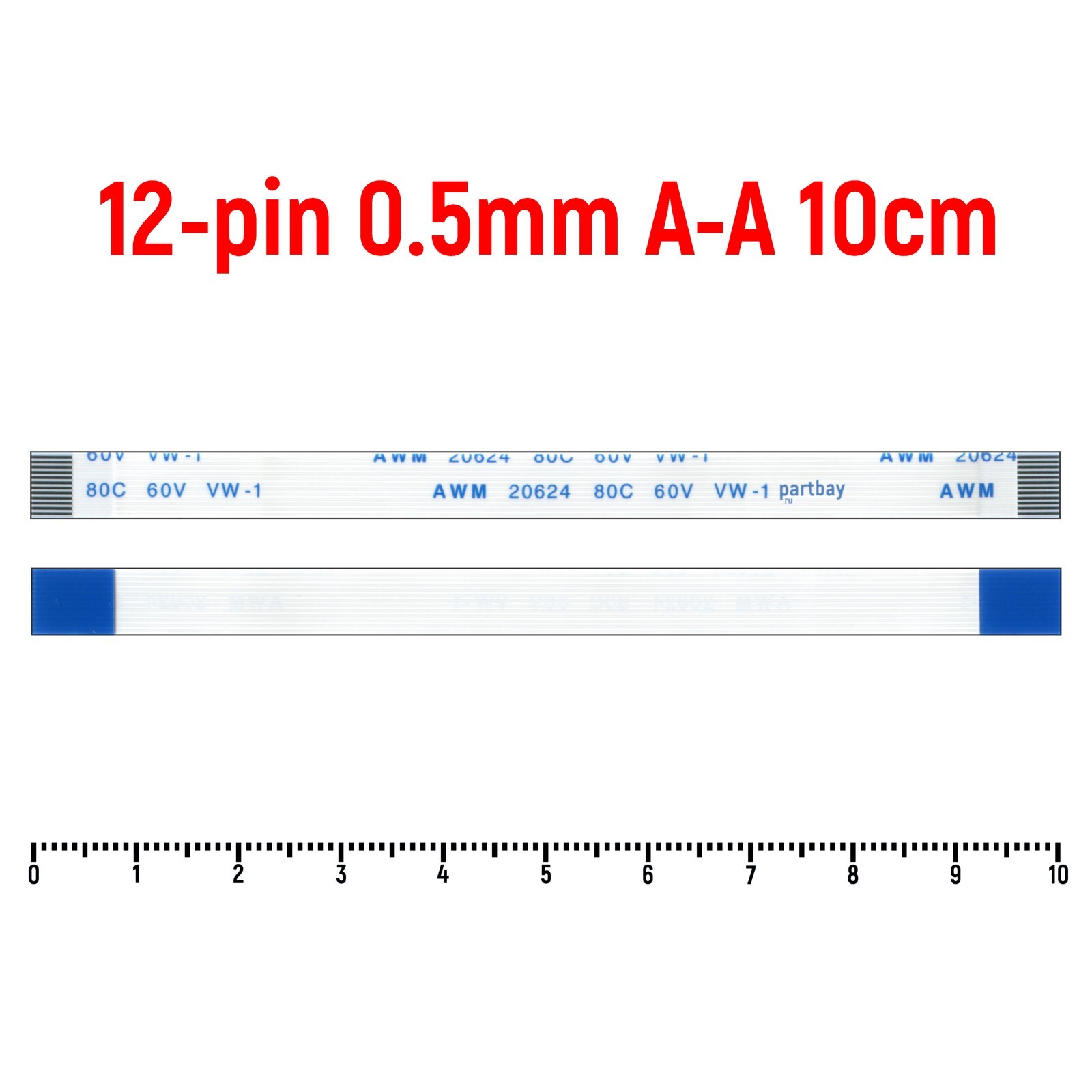 Шлейф FFC 12-pin Шаг 0.5mm Длина 10cm Прямой A-A AWM 20624 80C 60V VW-1