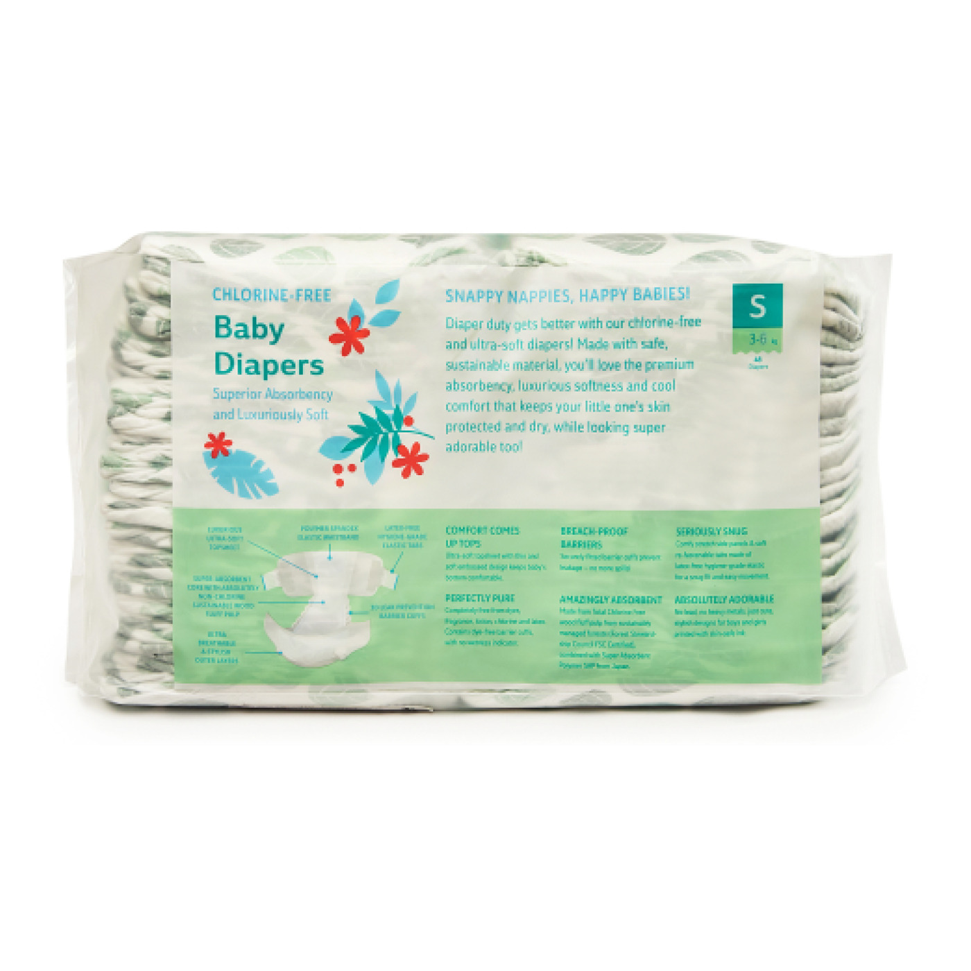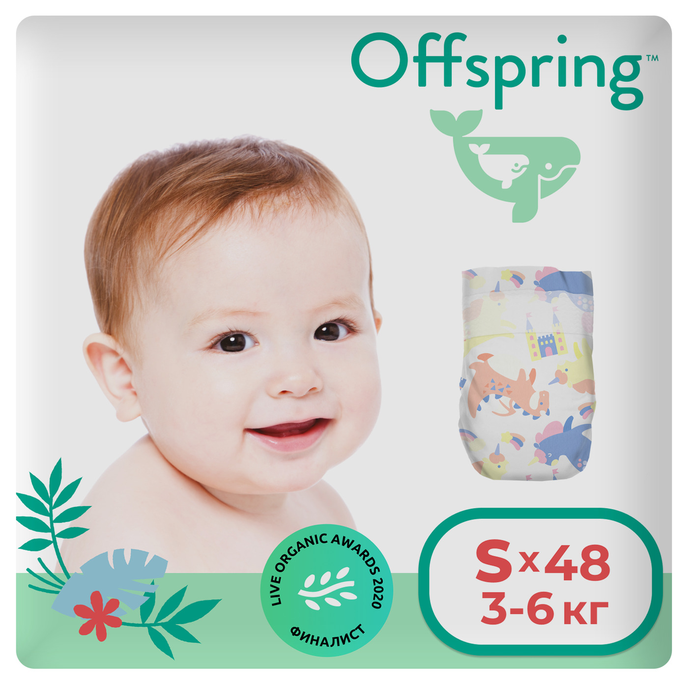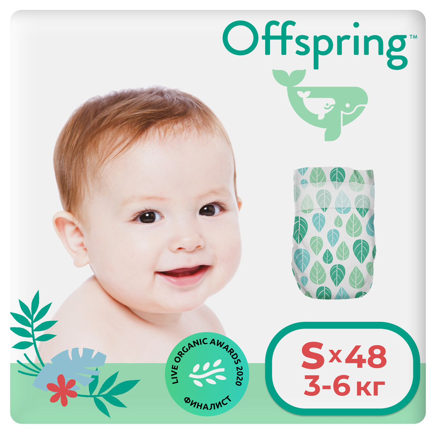 Подгузники Offspring, размер S 3-6 кг. 48 шт. расцветка Листочки