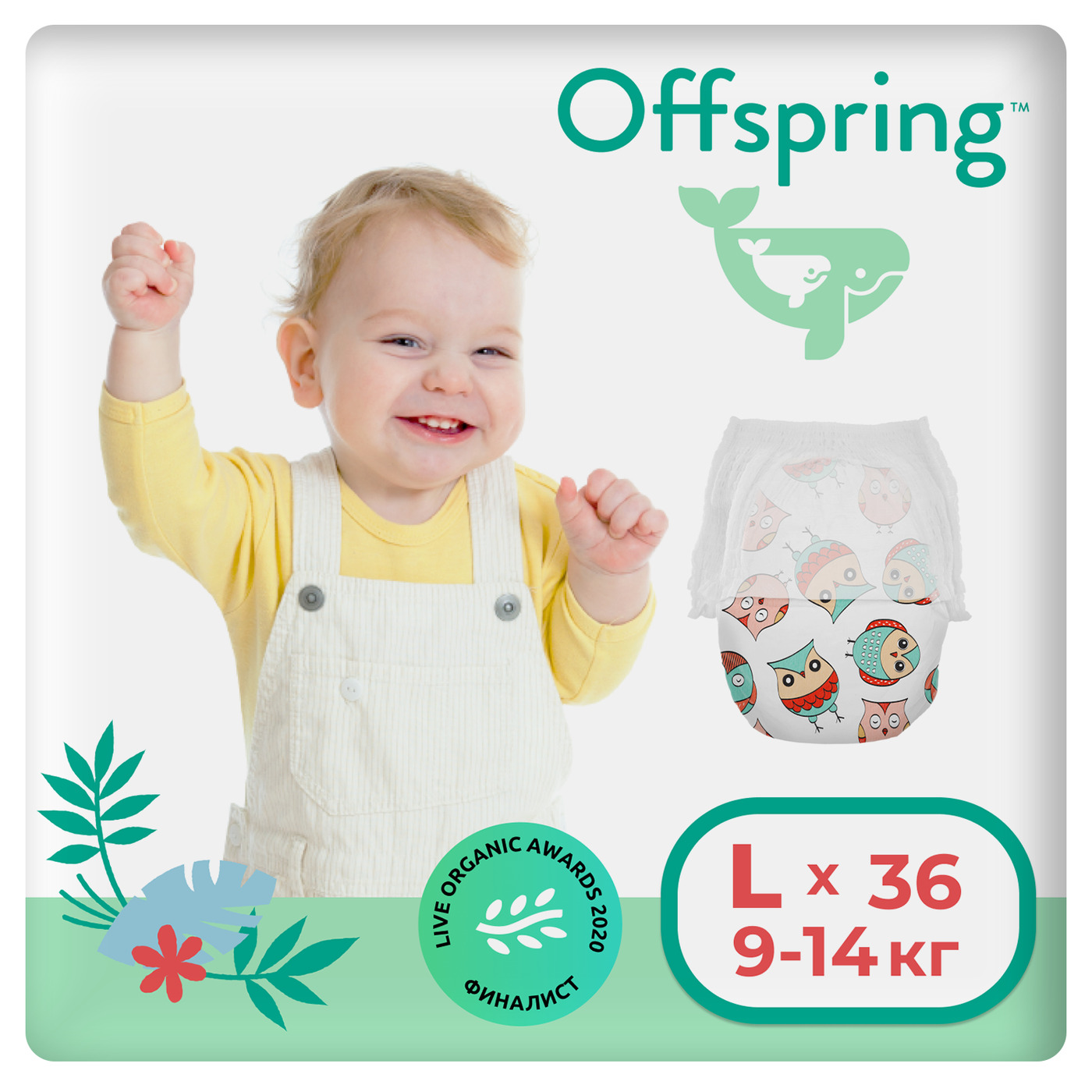 Offspring трусики-подгузники, L 9-14 кг. 36 шт. расцветка Совы