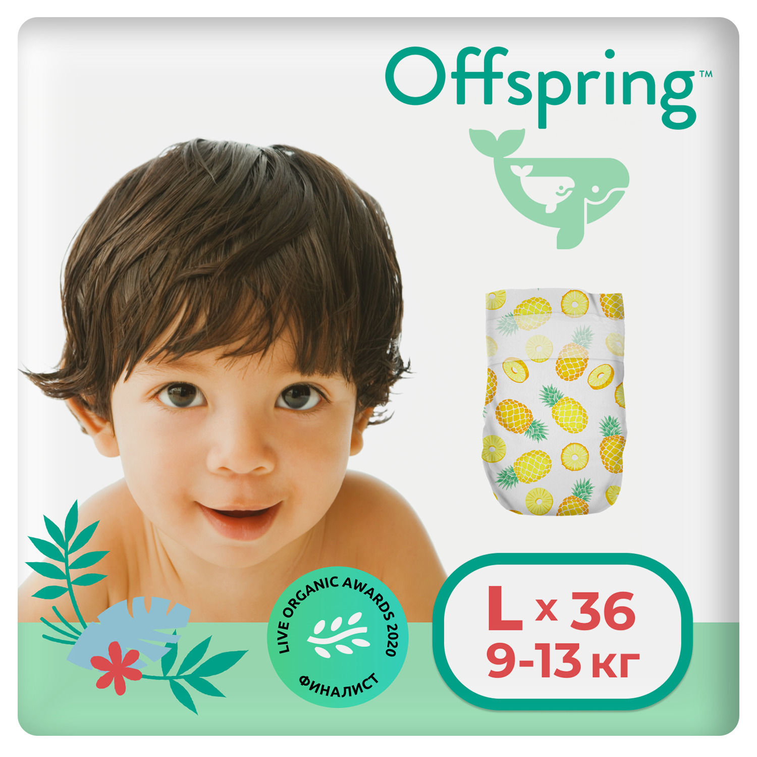 Offspring подгузники, L 9-13 кг. 36 шт. расцветка Ананасы
