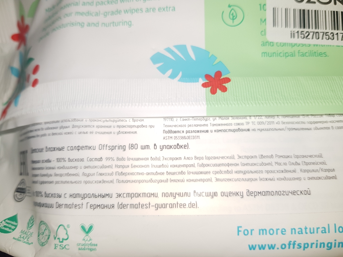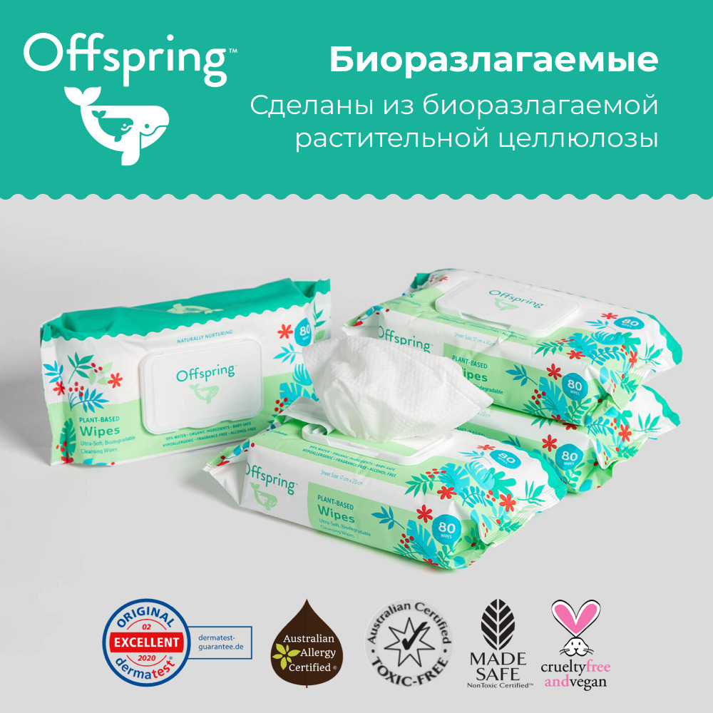 Offspring биоразлагаемые влажные салфетки, 80 шт.