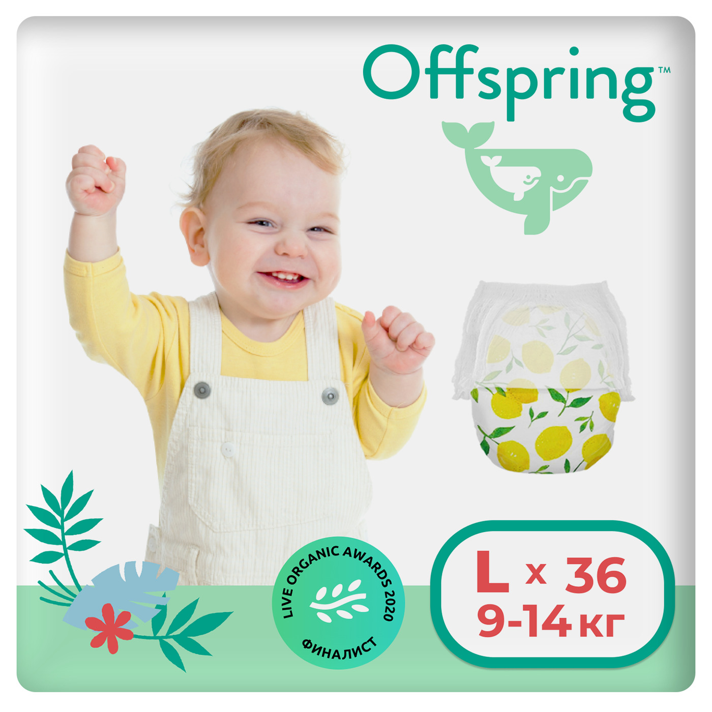 Offspring трусики-подгузники, L 9-14 кг. 36 шт. расцветка Лимоны