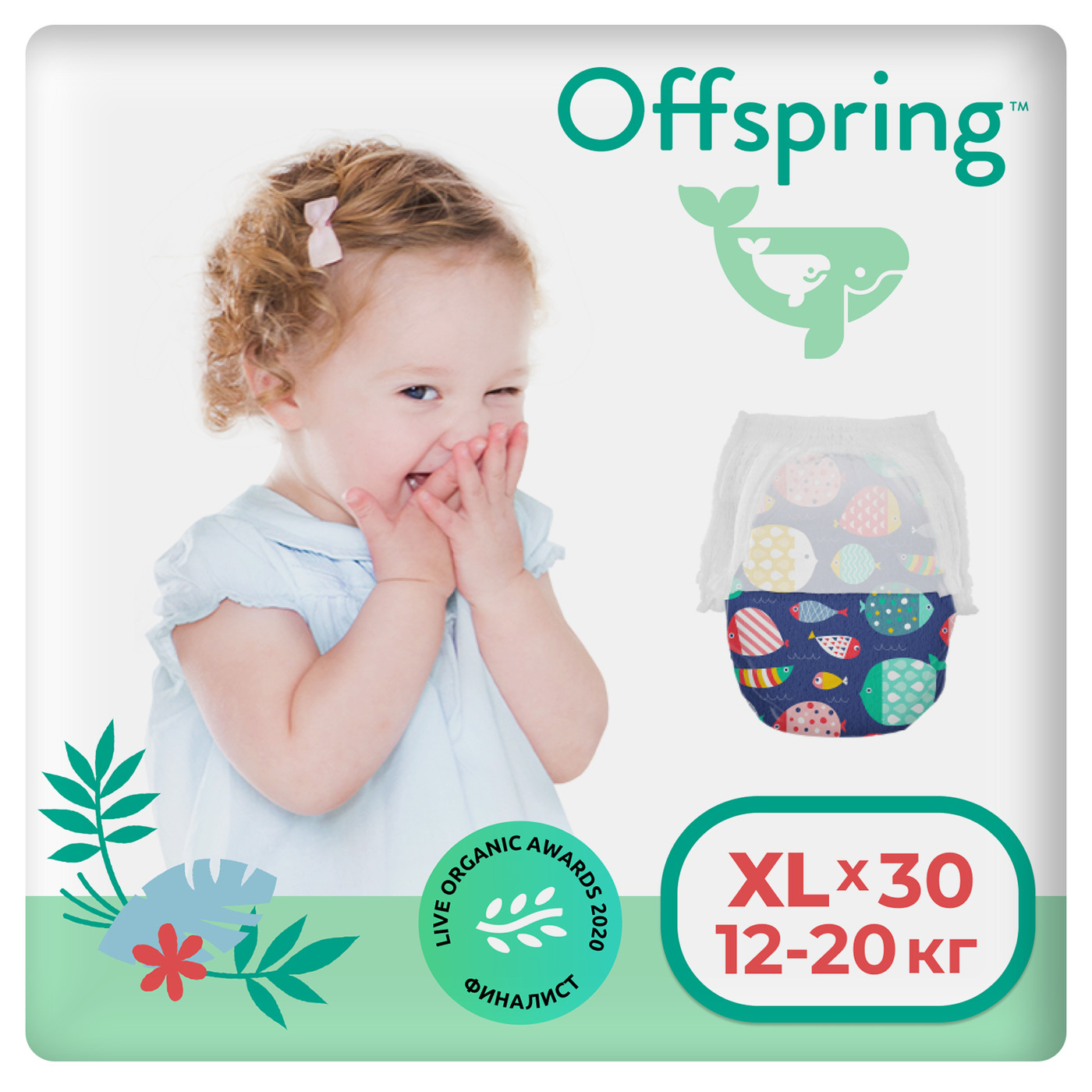 Offspring трусики-подгузники, XL 12-20 кг. 30 шт. расцветка Рыбки