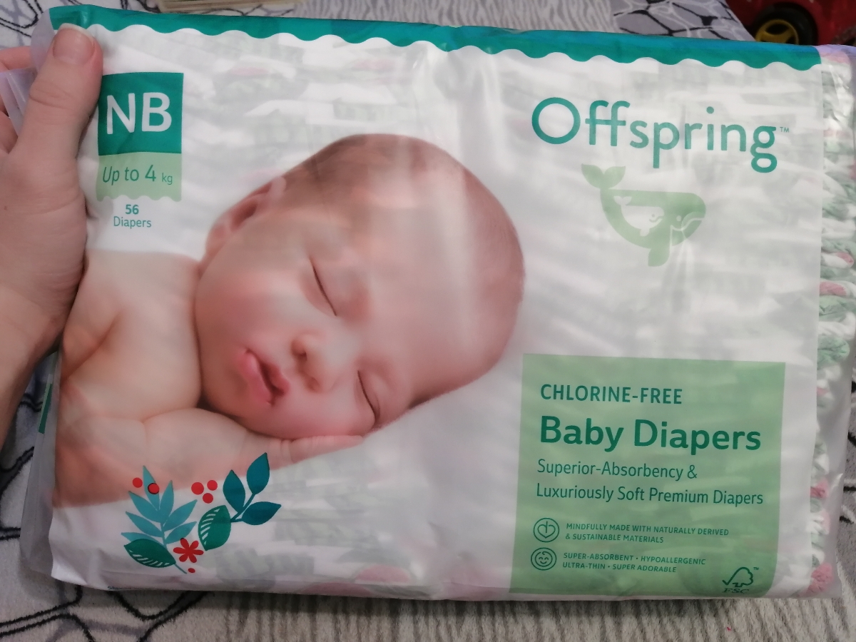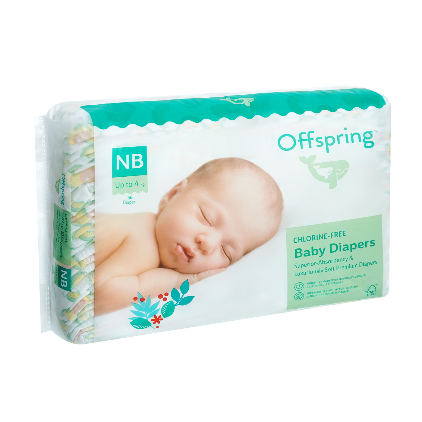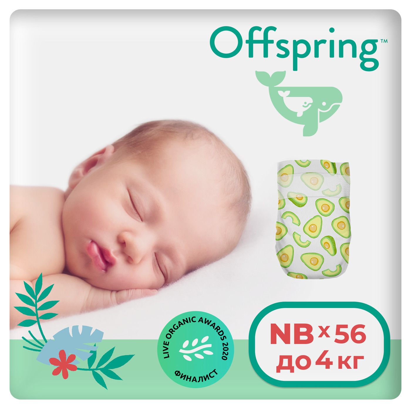 Offspring подгузники, NB 2-4 кг. 56 шт. расцветка Лимоны