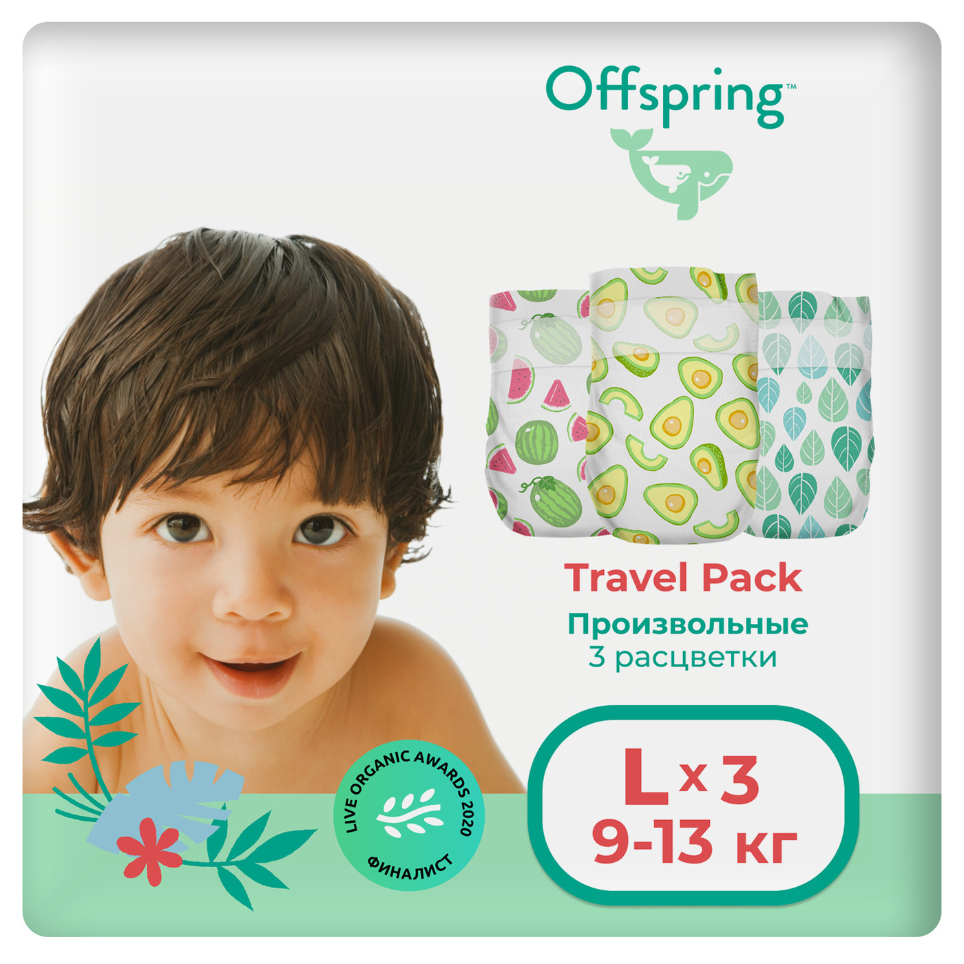 Offspring подгузники, Travel pack, L 9-13 кг. 3 шт. 3 расцветки