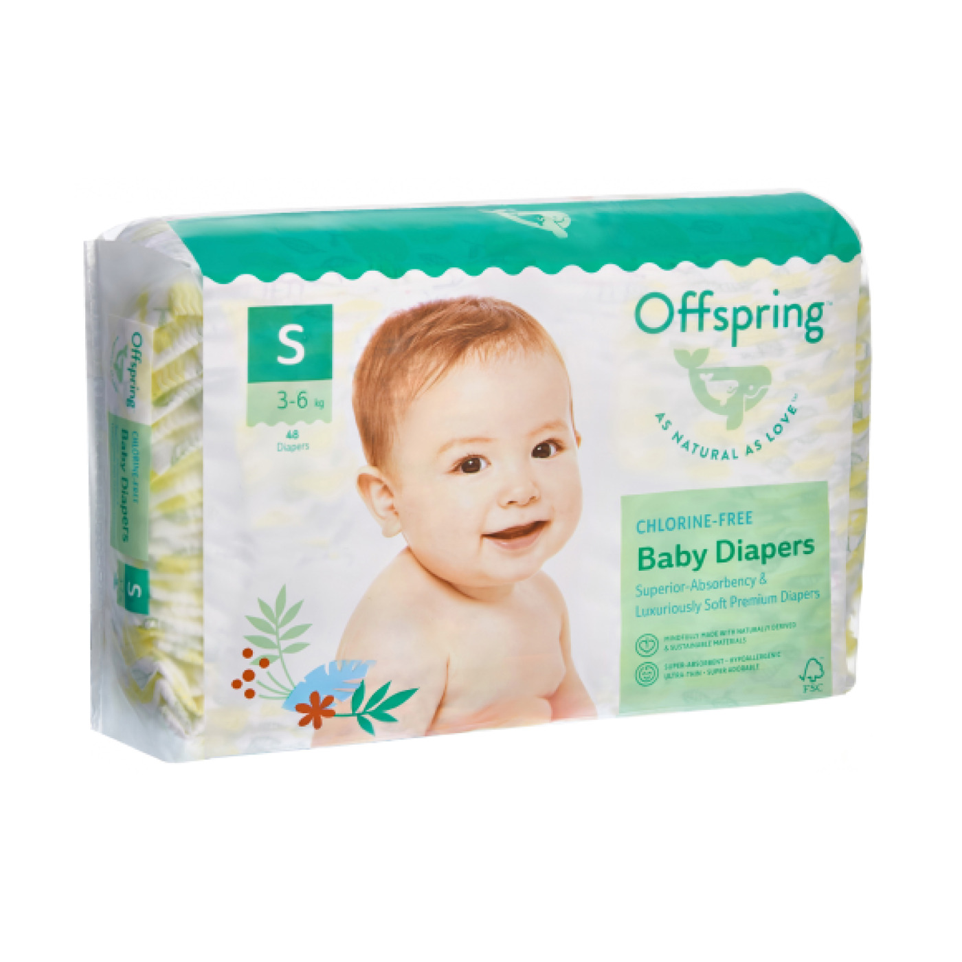 Подгузники Offspring, размер S 3-6 кг. 48 шт. расцветка Лимоны