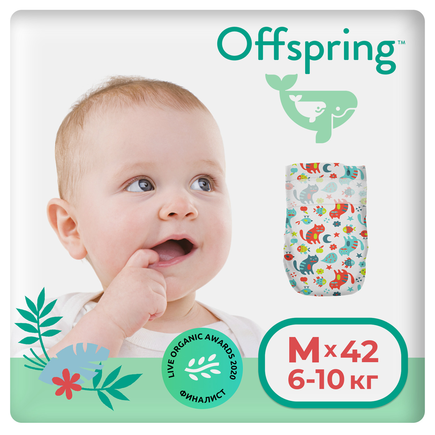 Подгузники Offspring, размер M 6-10 кг. 42 шт. расцветка Котики