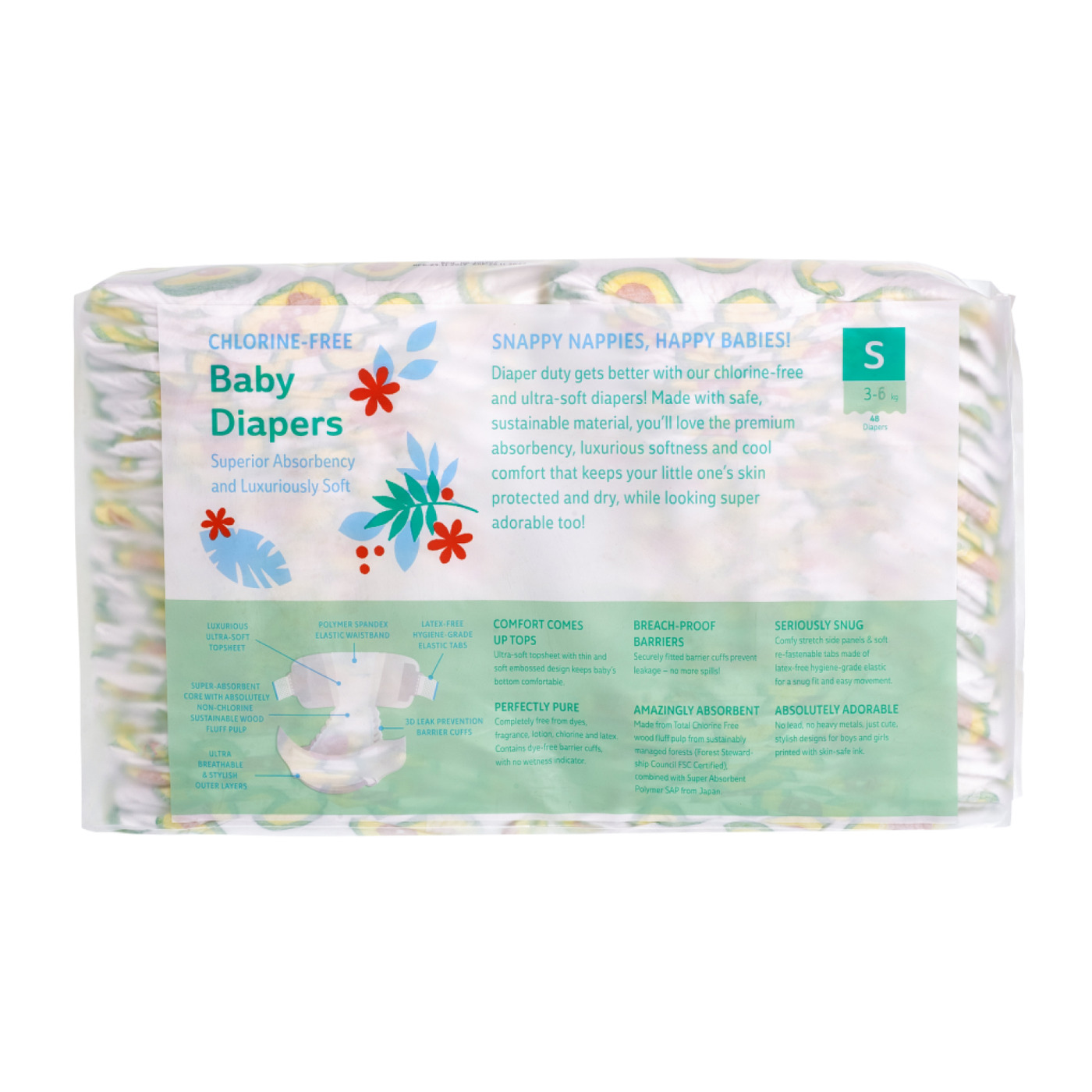 Подгузники Offspring, размер S 3-6 кг. 48 шт. расцветка Листочки