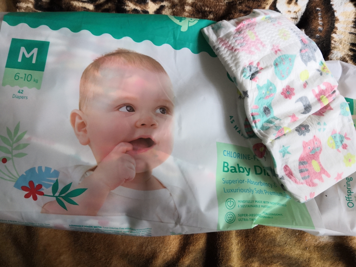 Offspring подгузники, M 6-10 кг. 42 шт. расцветка Авокадо