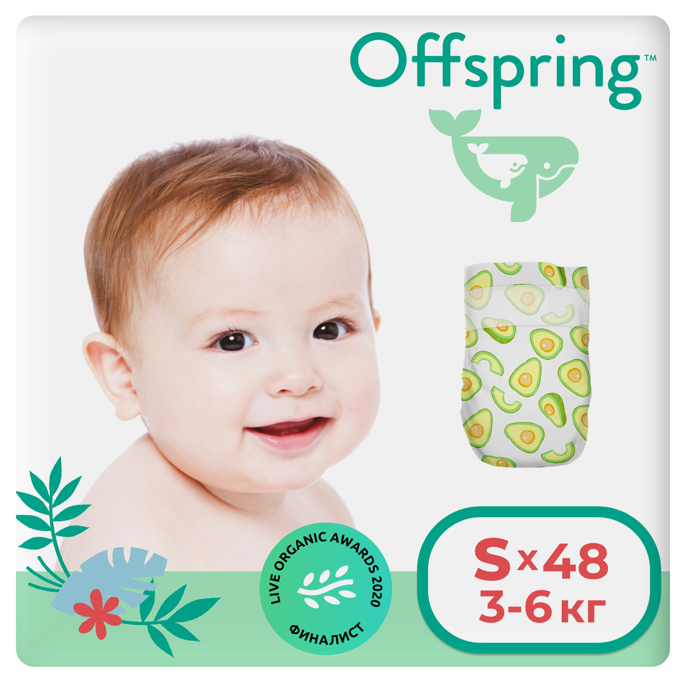 Offspring подгузники, S 3-6 кг. 48 шт. расцветка Авокадо