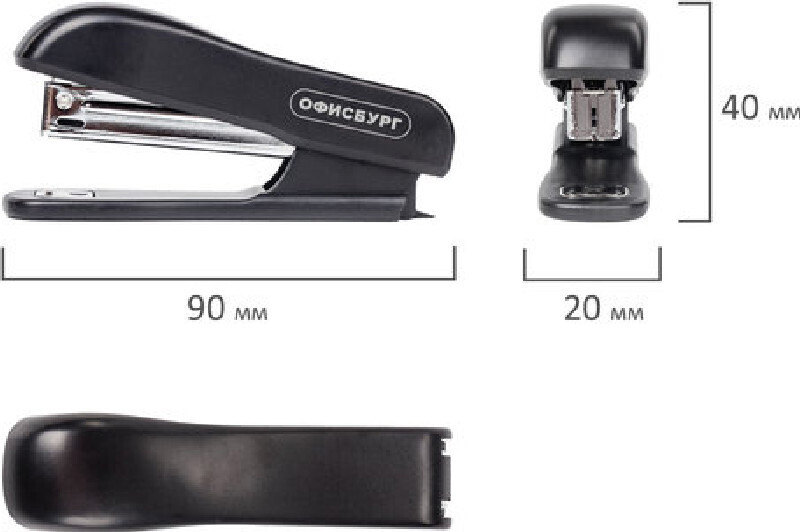 Степлер №24/6, 26/6 ОФИСБУРГ, до 20 листов, черный, 227623
