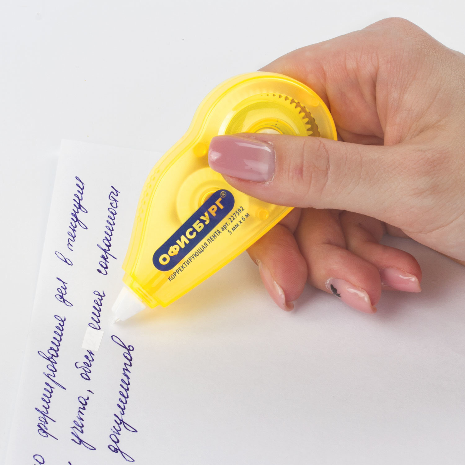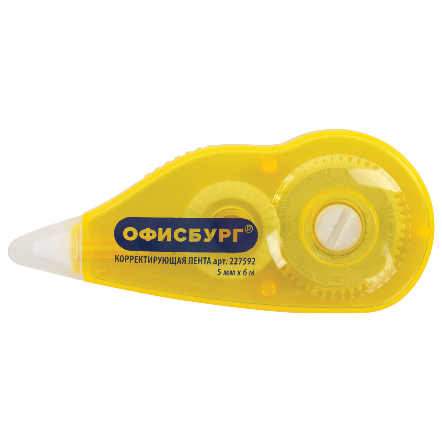 Корректирующая лента ОФИСБУРГ 5 мм х 6 м, корпус желтый, с подкручиванием, блистер, 227592