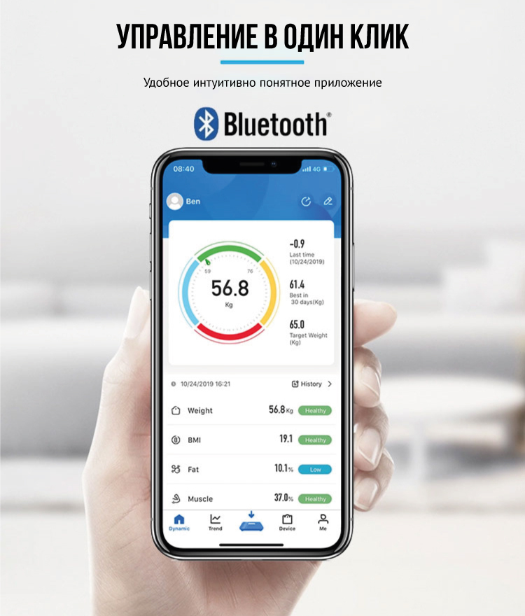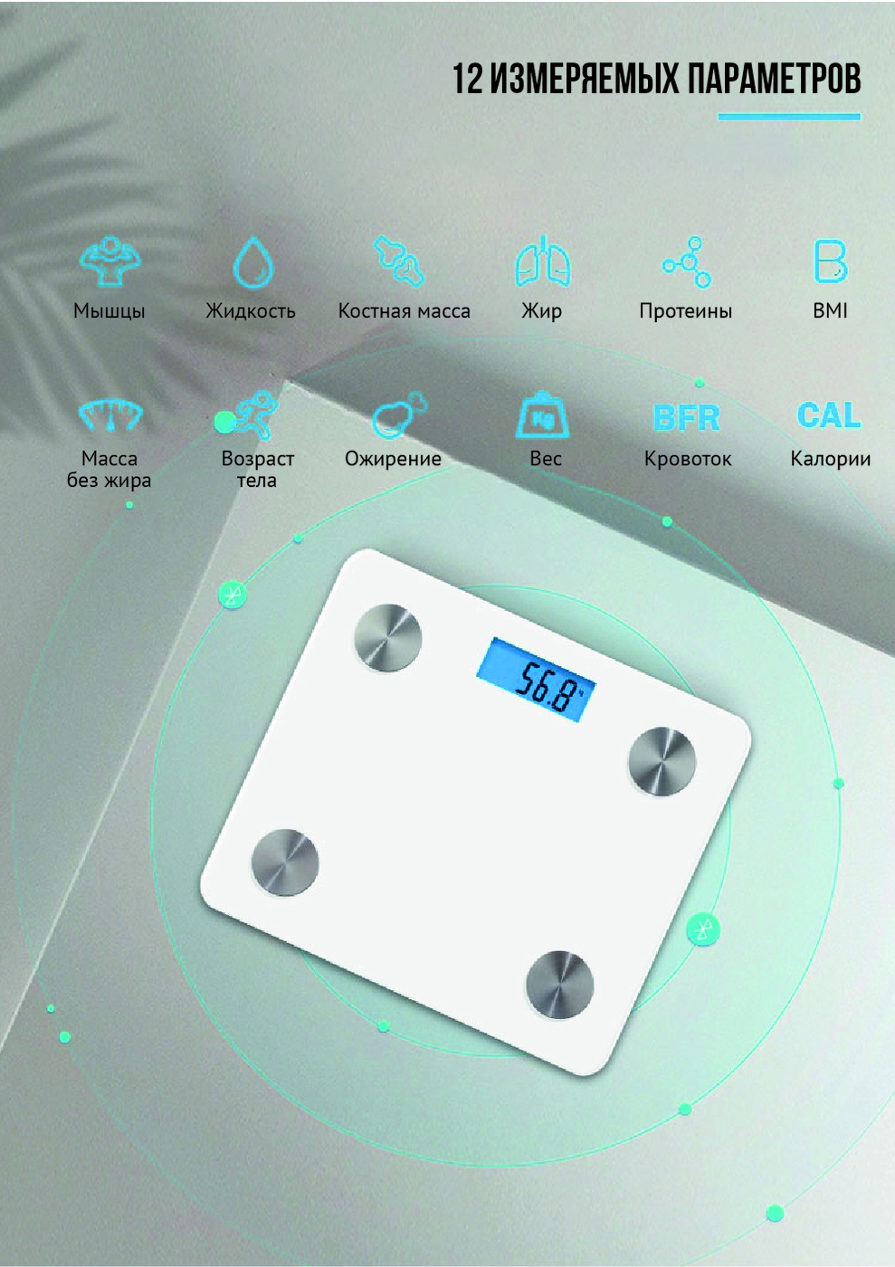 Напольные весы OKOK Диагностические электронные, умные весы напольные электронные, умные электронные диагностические, белый