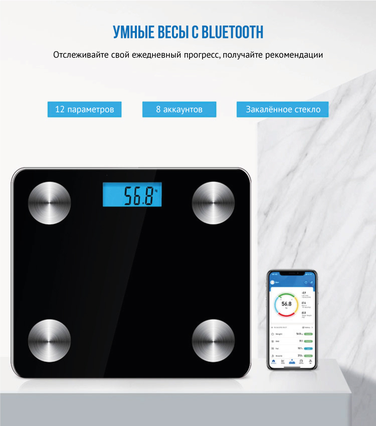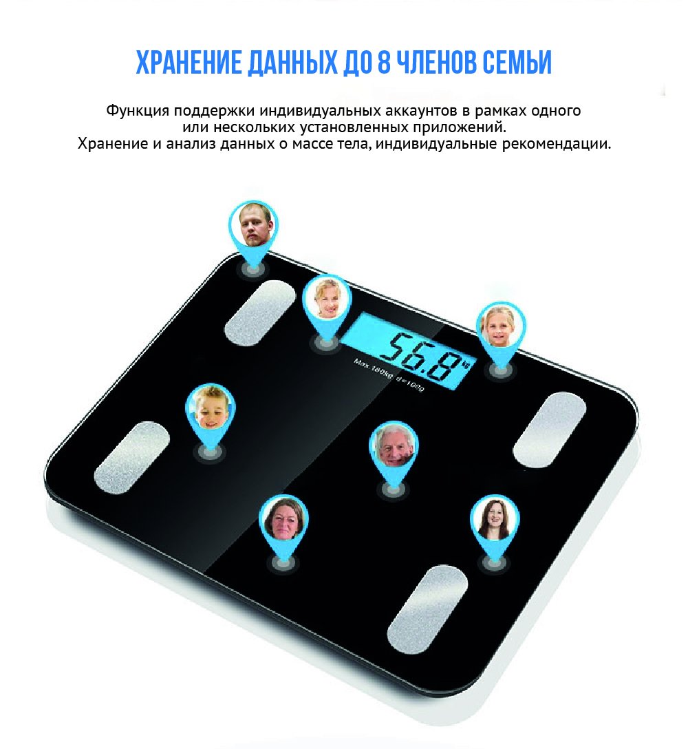 Напольные весы OKOK Диагностические электронные, умные весы напольные электронные, умные электронные диагностические, черный