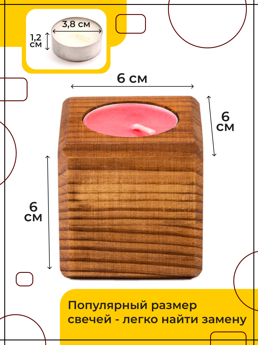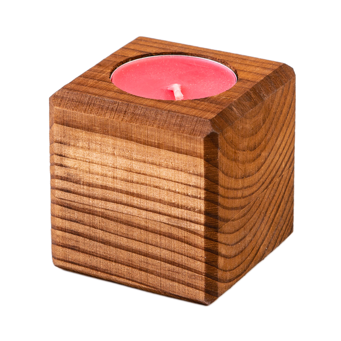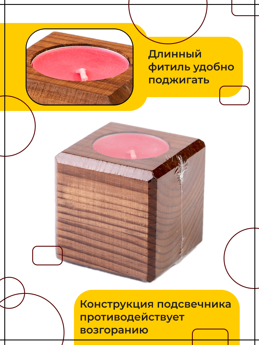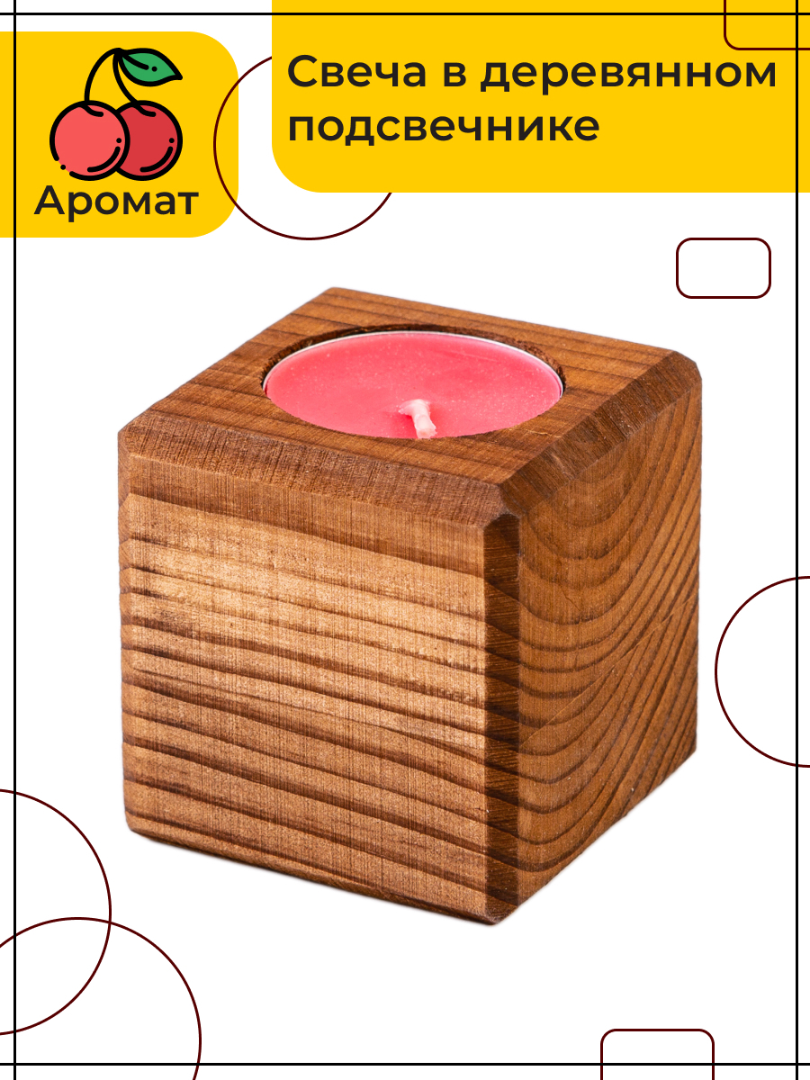 Свеча в деревянном подсвечнике 6 х 6 см., аромат Вишня, OKTAUR