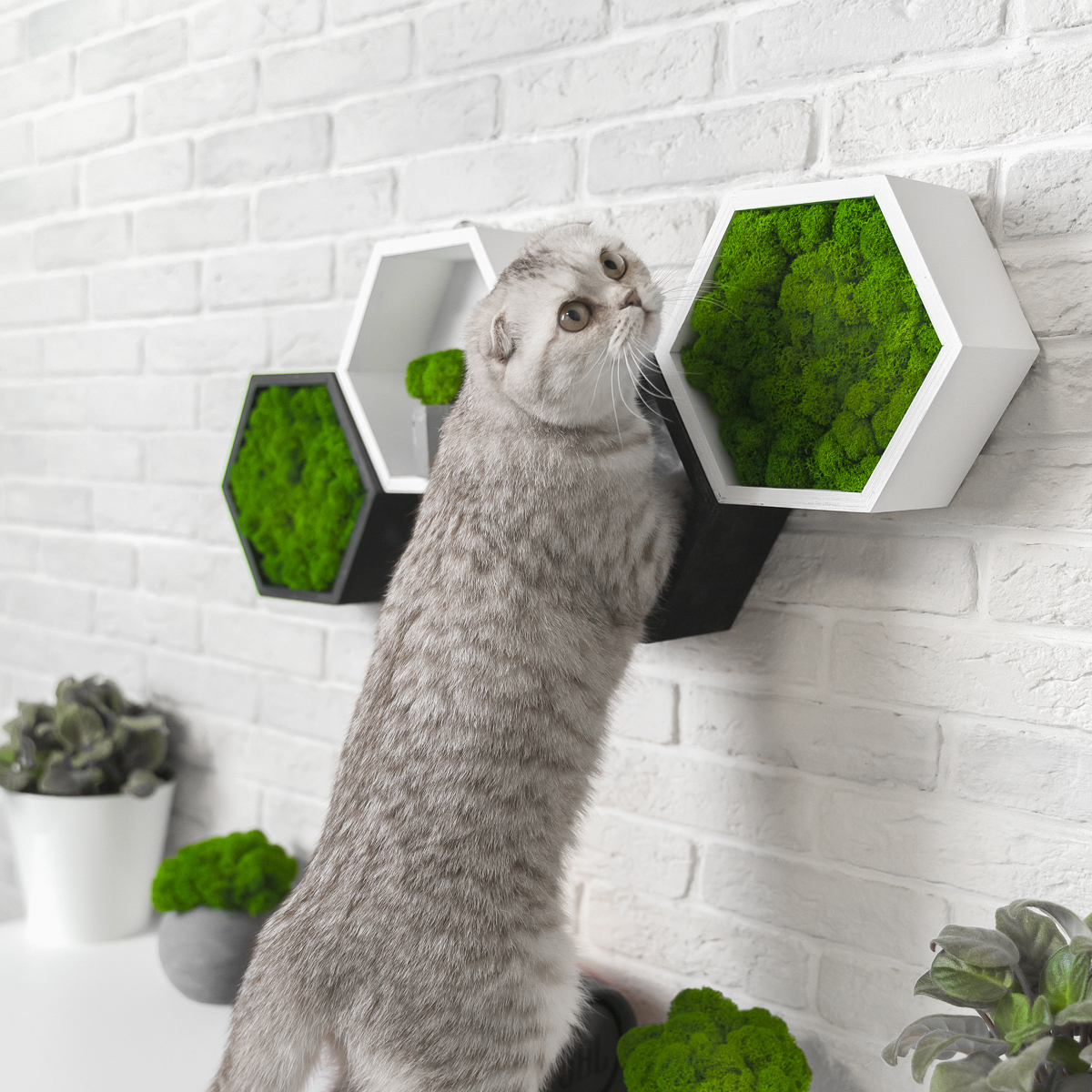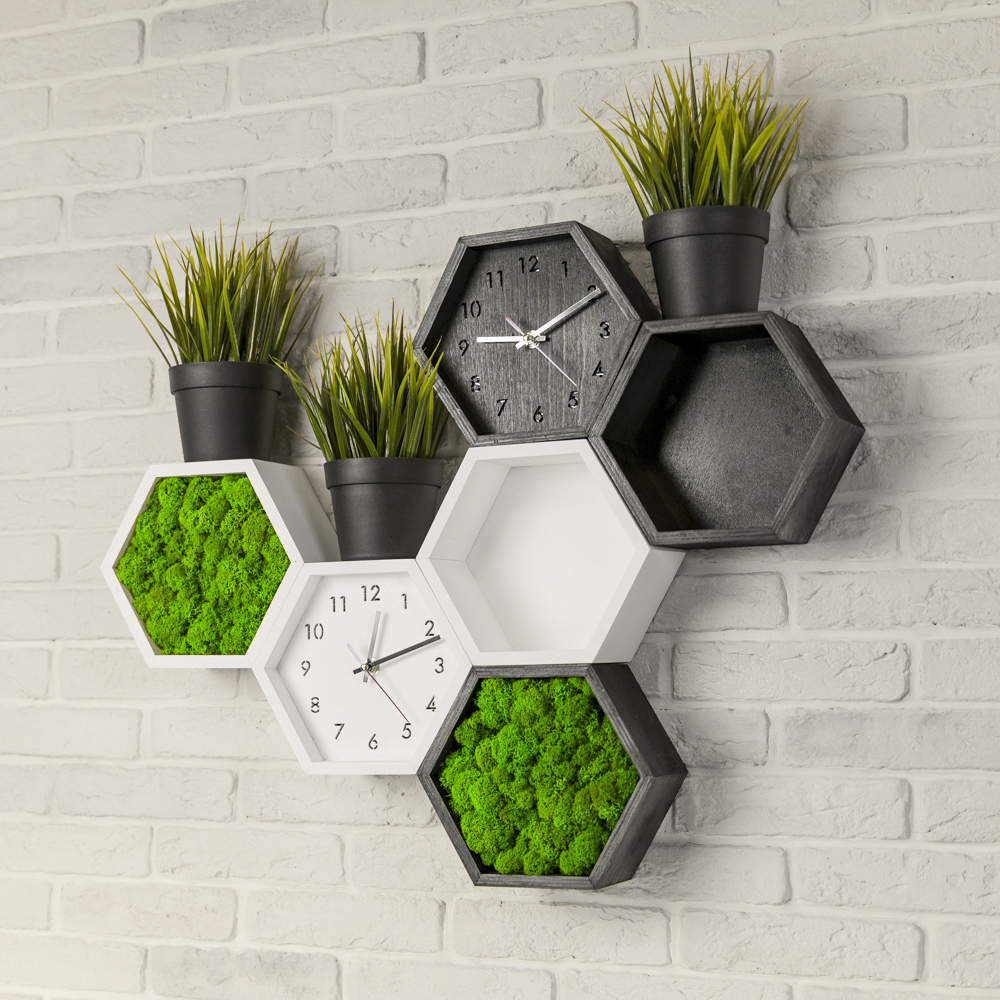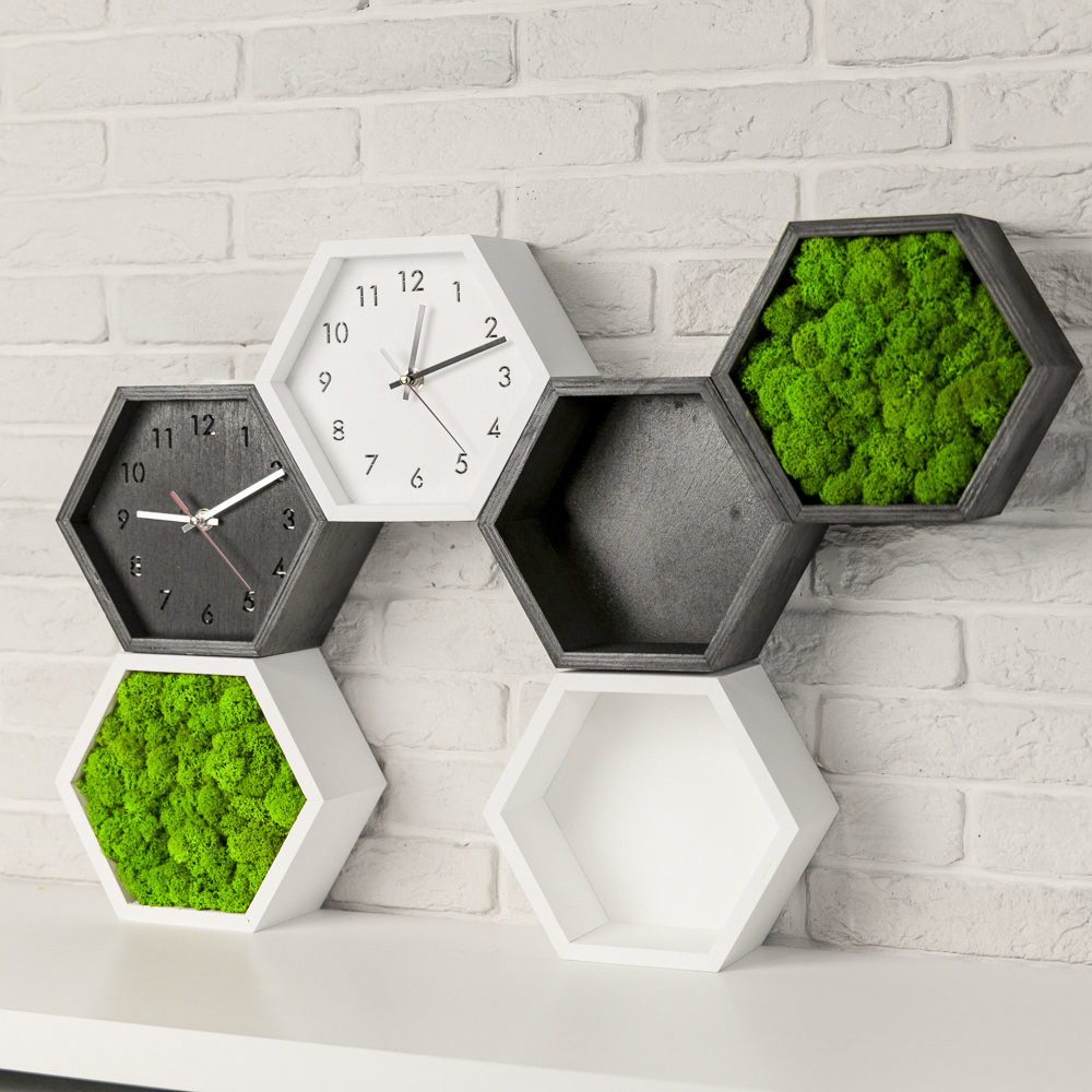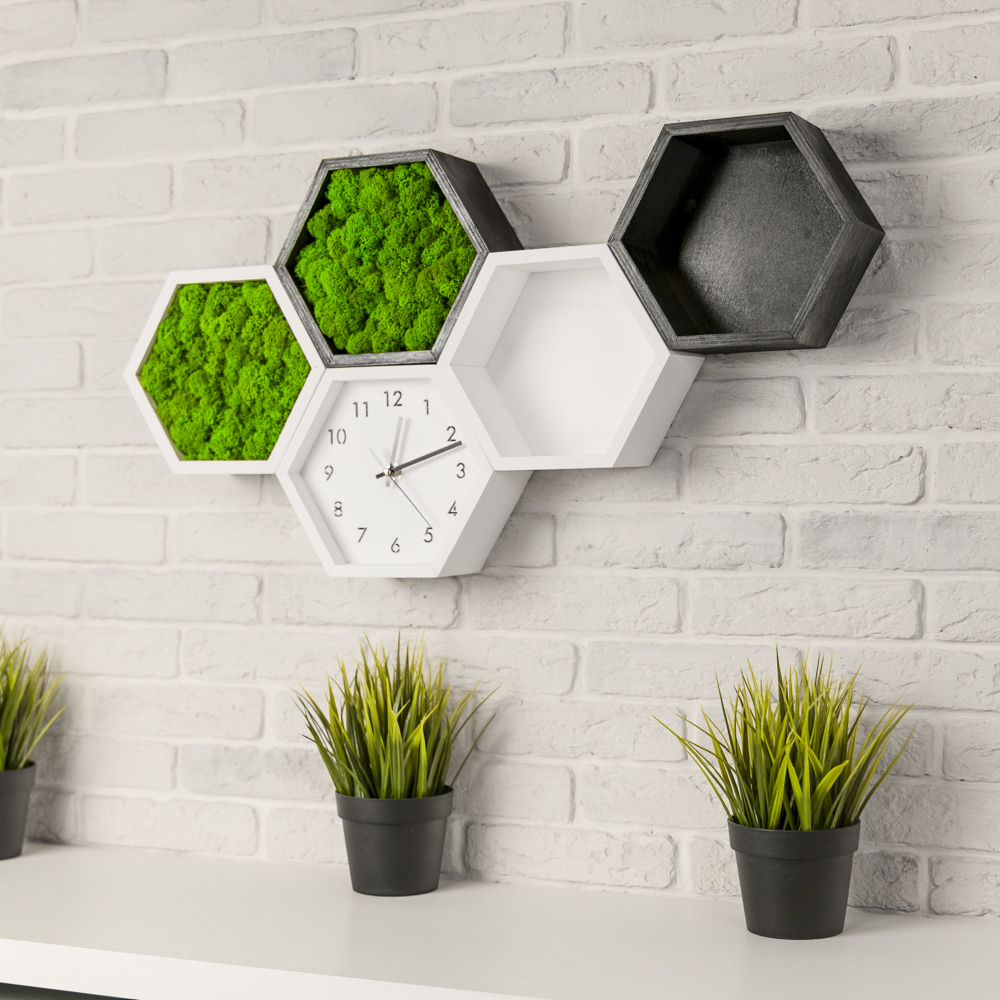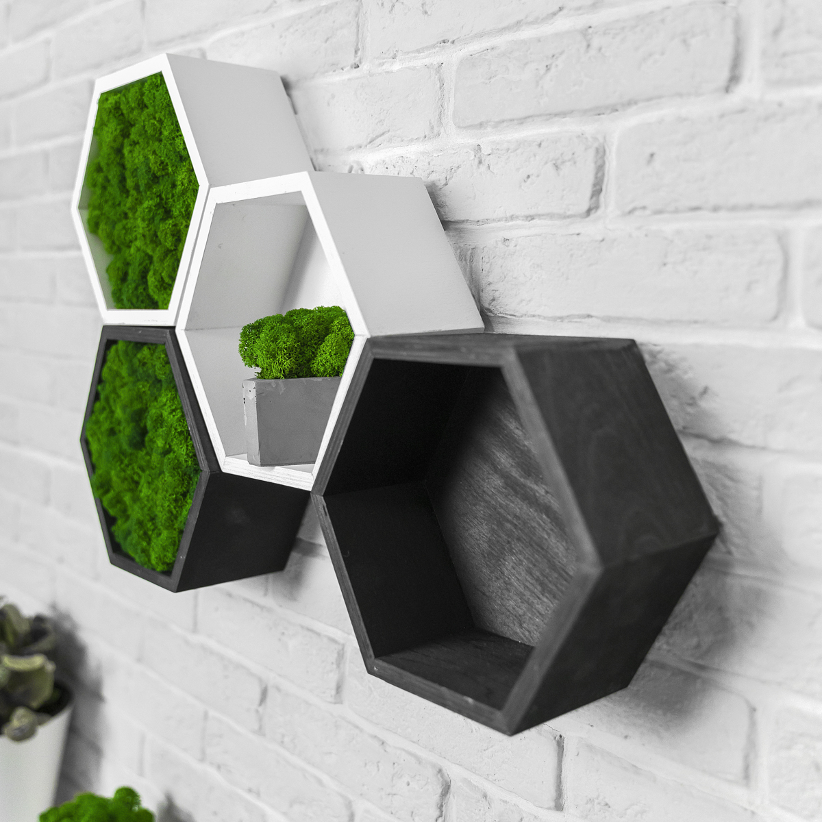Полка OKTAUR Настенная Прямая Декоративная Сота со мхом, Мох стабилизированный, 20х8.5х18 см, 1 шт.