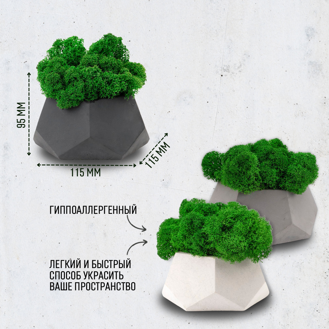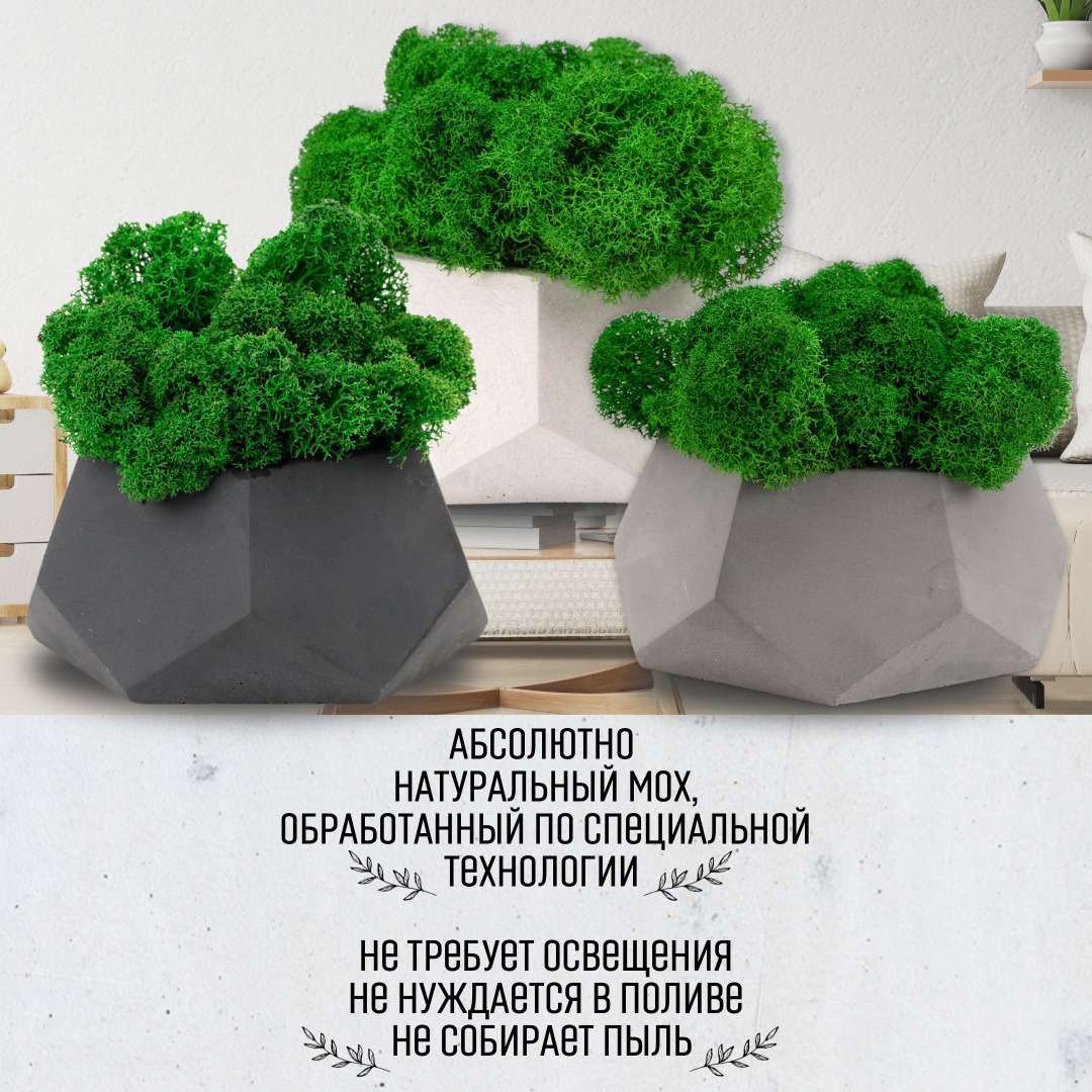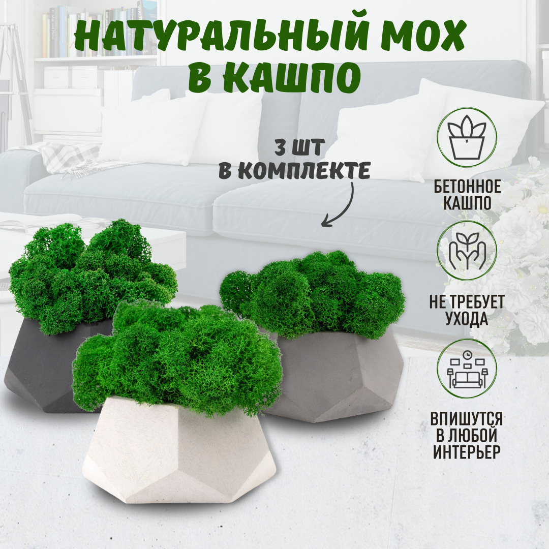 Кашпо бетонное со мхом Альфа, коллекция 3 шт., OKTAUR