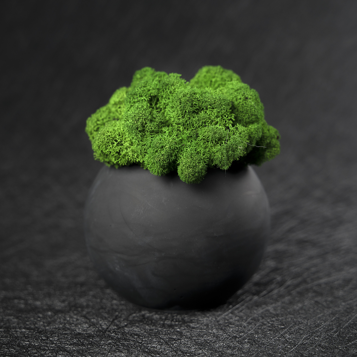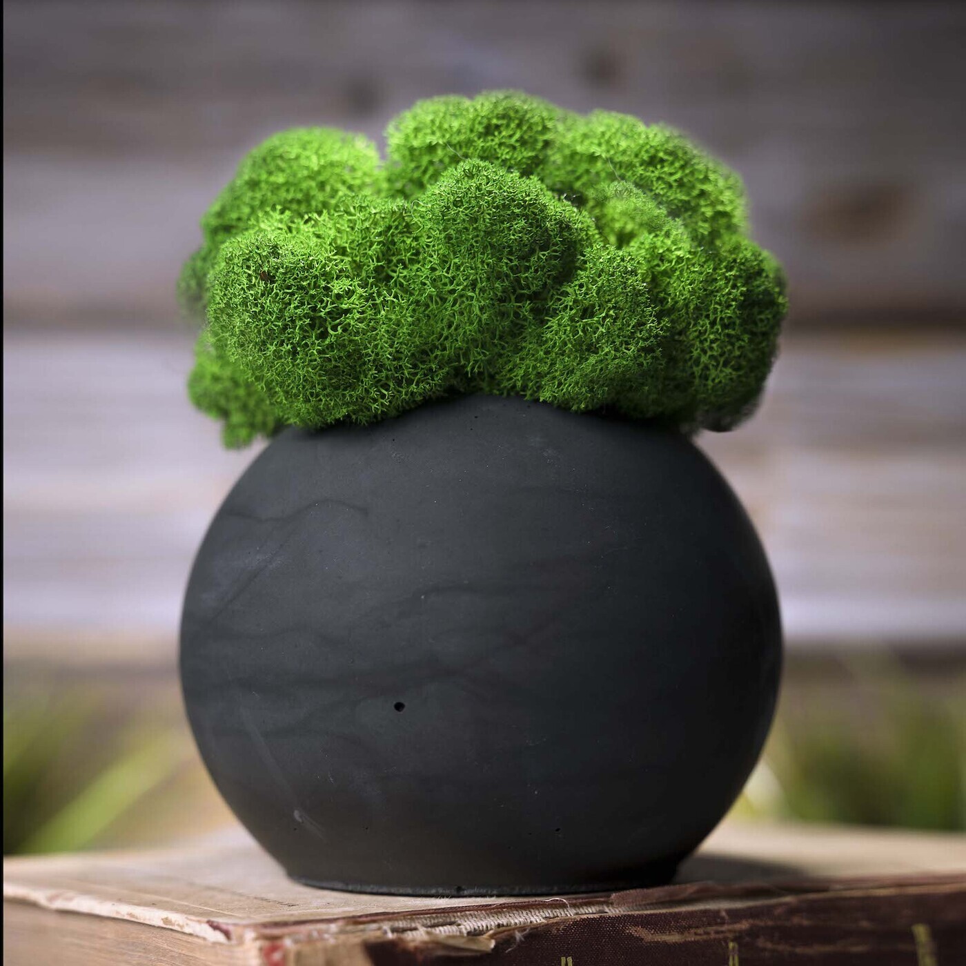 Кашпо бетонное с мхом Сфера, антрацит, OKTAUR