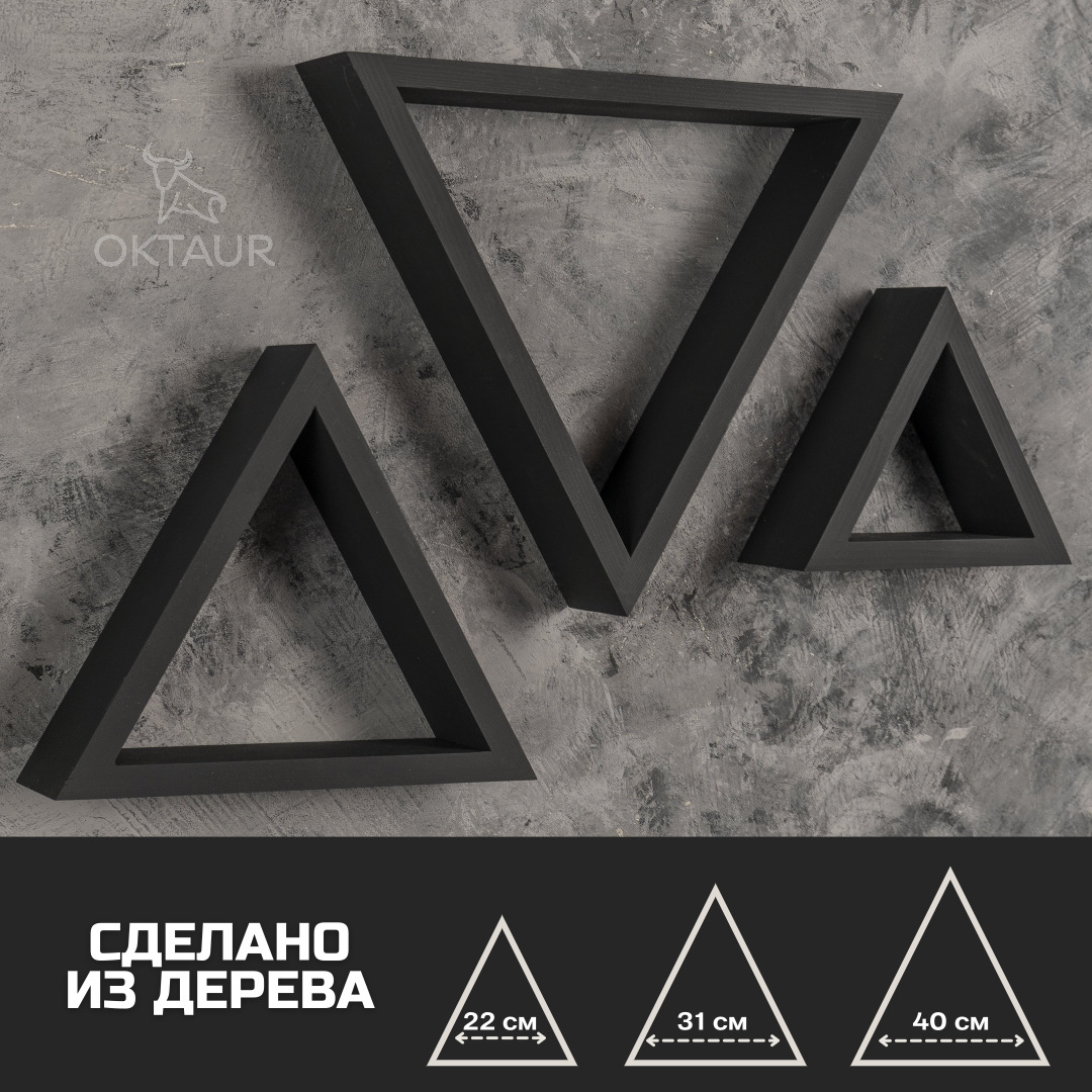 Комплект полок OKTAUR Настенная Прямая треугольные декоративные из массива, 40х8.5х35 см, 3 шт.