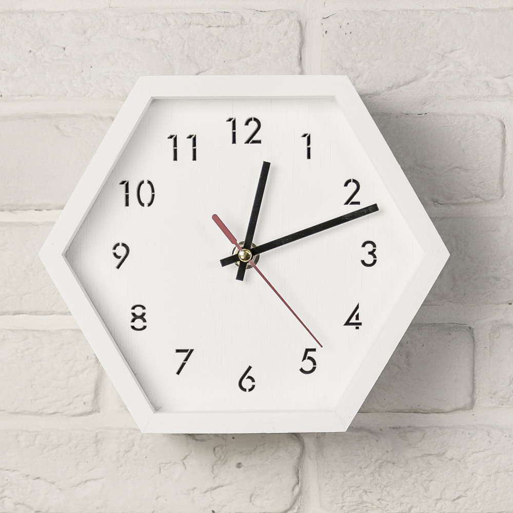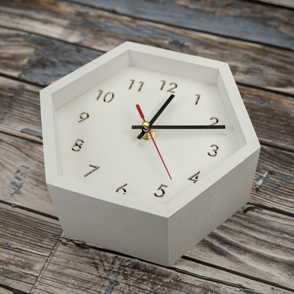 Полка OKTAUR Настенная Прямая Декоративная Сота с часами, Часы настенные, 20х9х18 см, 1 шт.