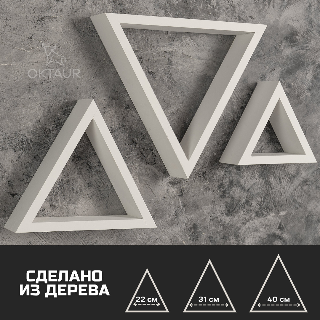 Комплект полок OKTAUR Настенная Прямая треугольные декоративные из массива, 40х8.5х35 см, 3 шт.