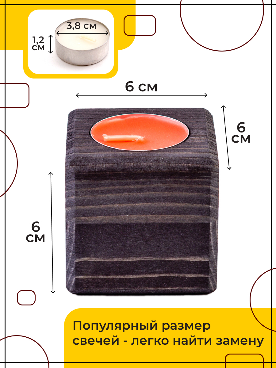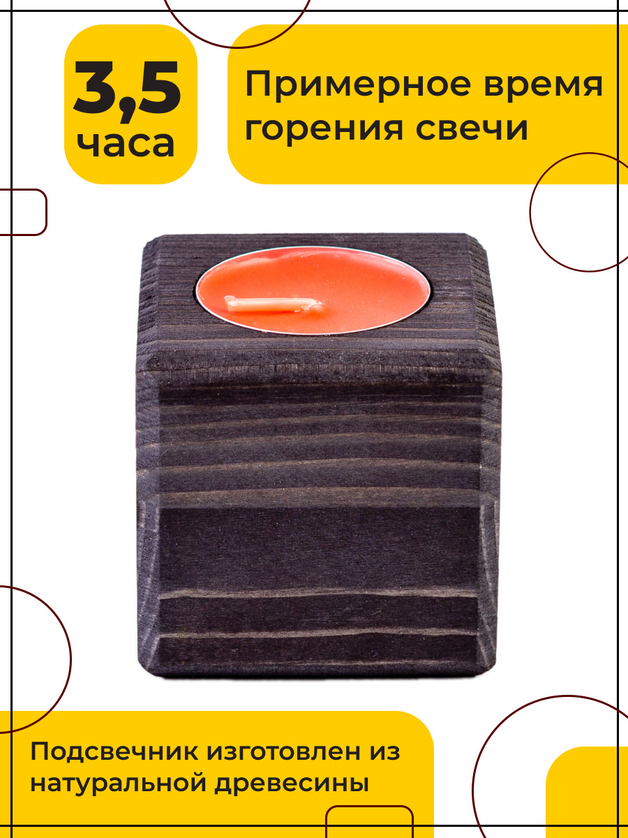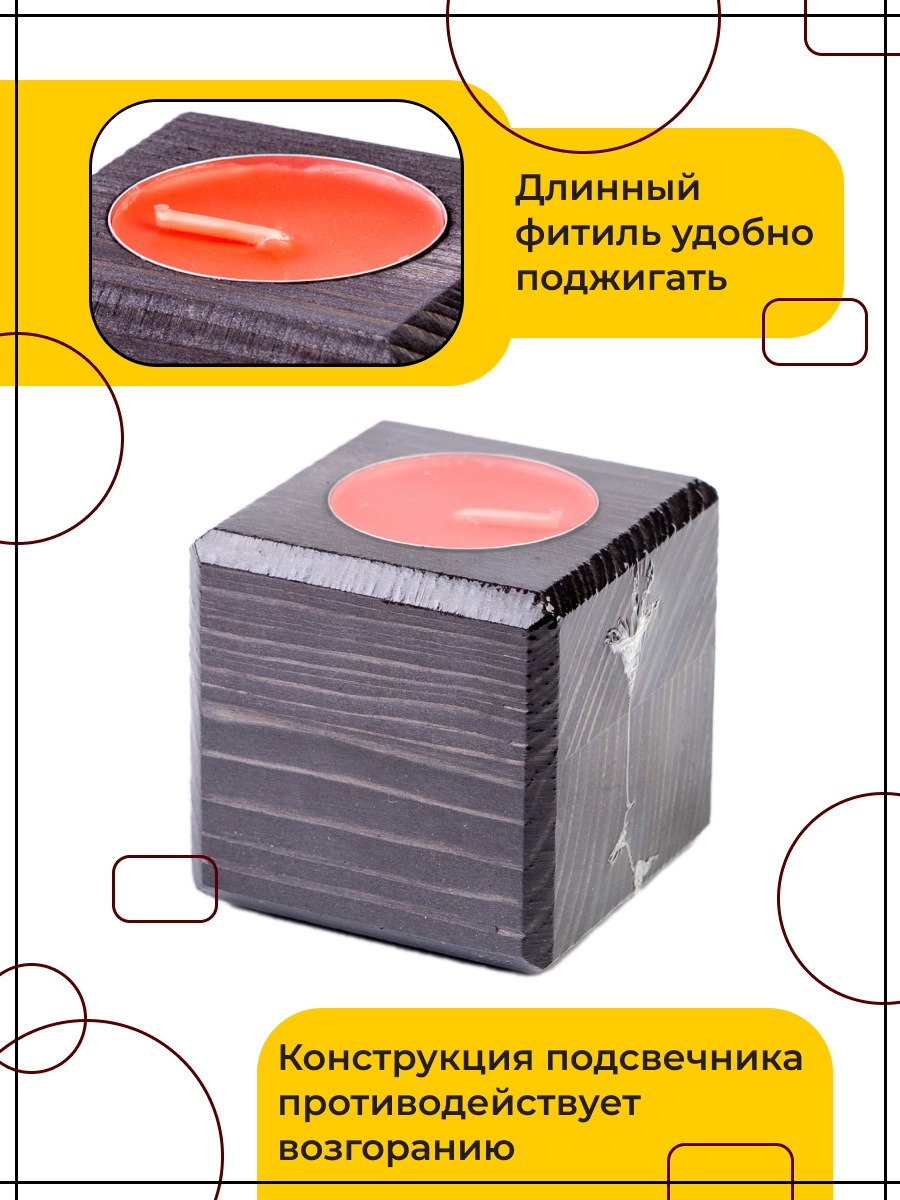 Свеча в деревянном подсвечнике 6 х 6 см., аромат Клубника, OKTAUR