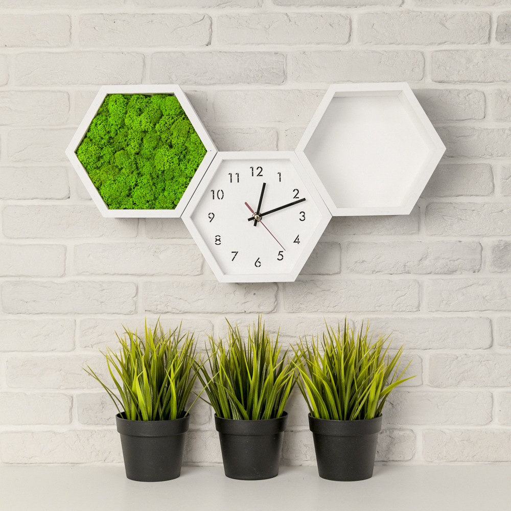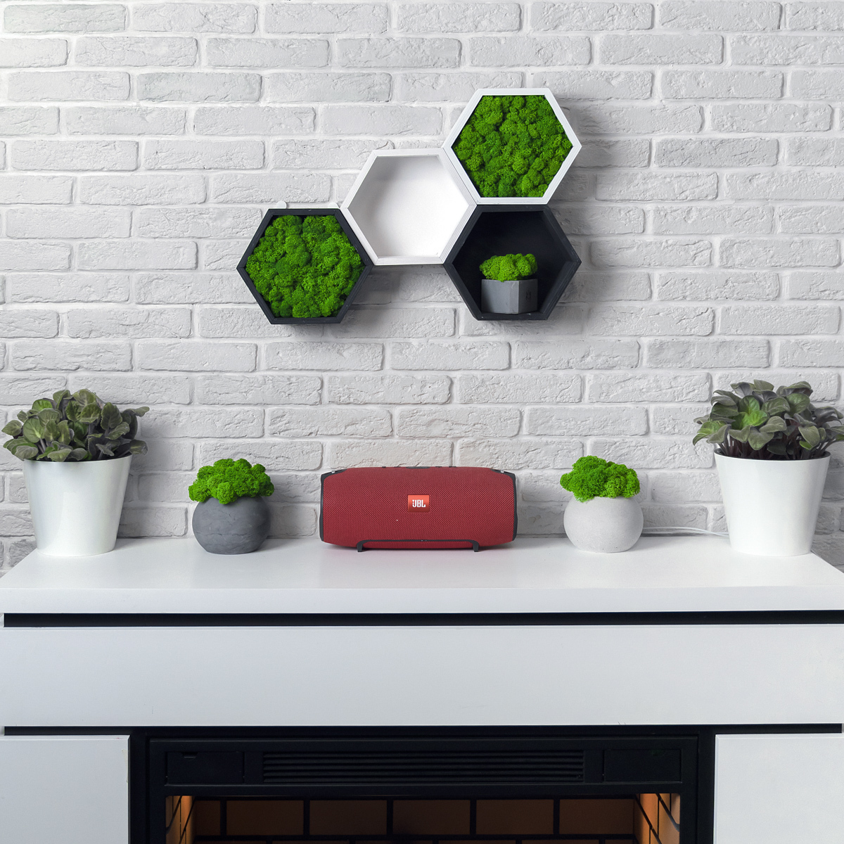 Полка OKTAUR Настенная Прямая Сота - пано со мхом серия BIRCH, 20х8.5х18 см, 1 шт.