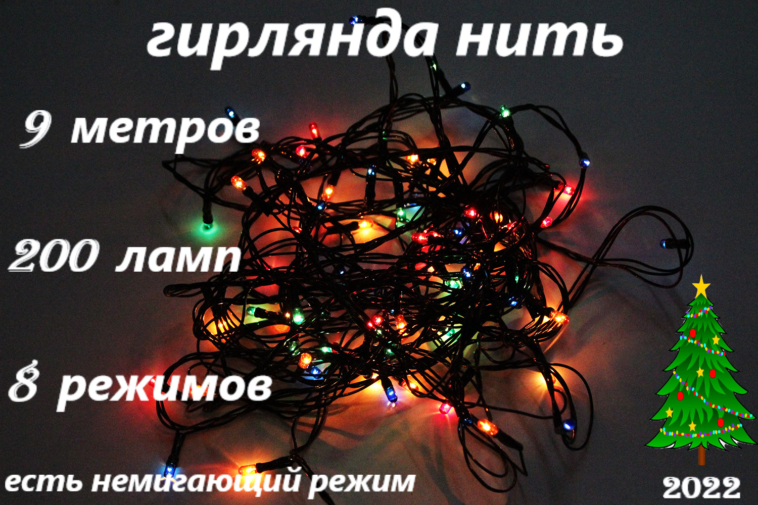 Электрогирлянда интерьерная Нить ОЛМИ 2000 Накаливания 200 ламп, 9 м, питание От сети 220В, 1 шт