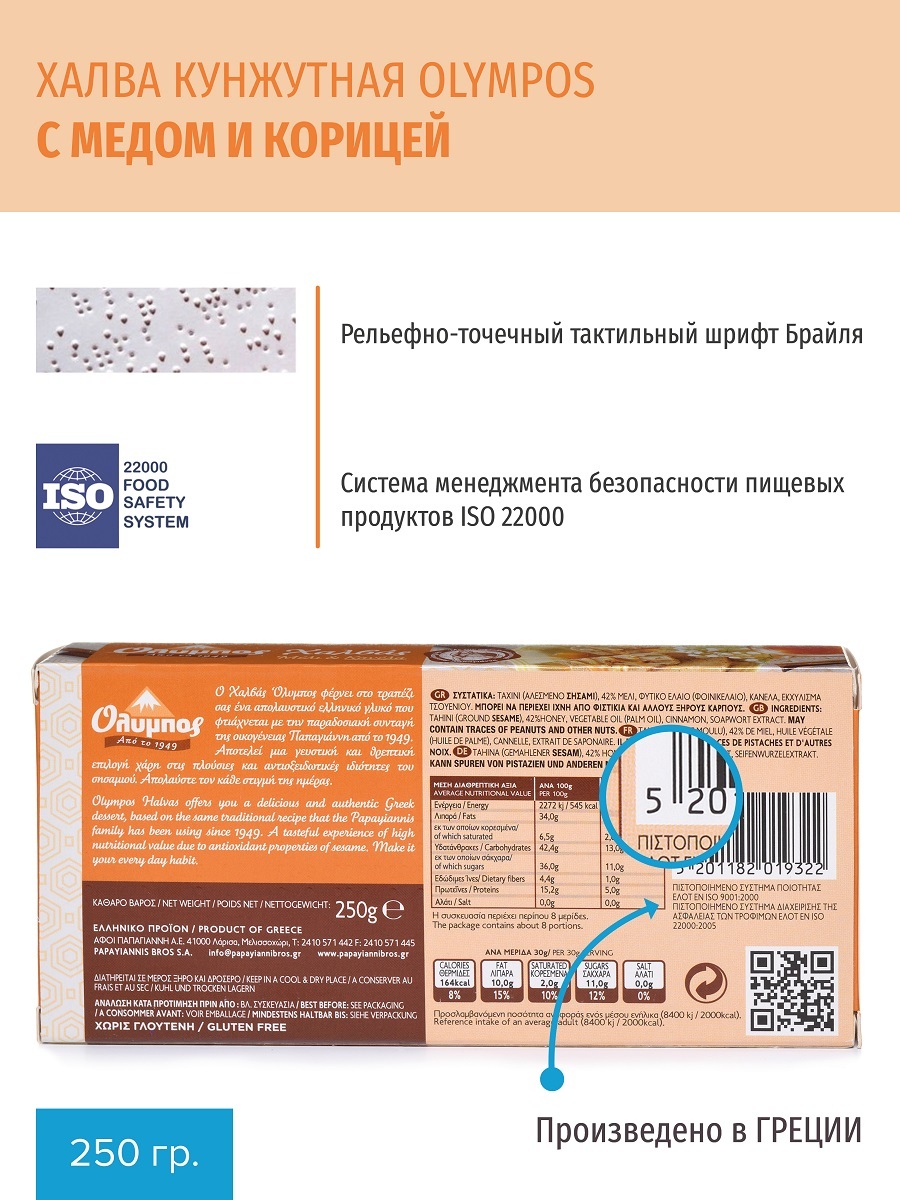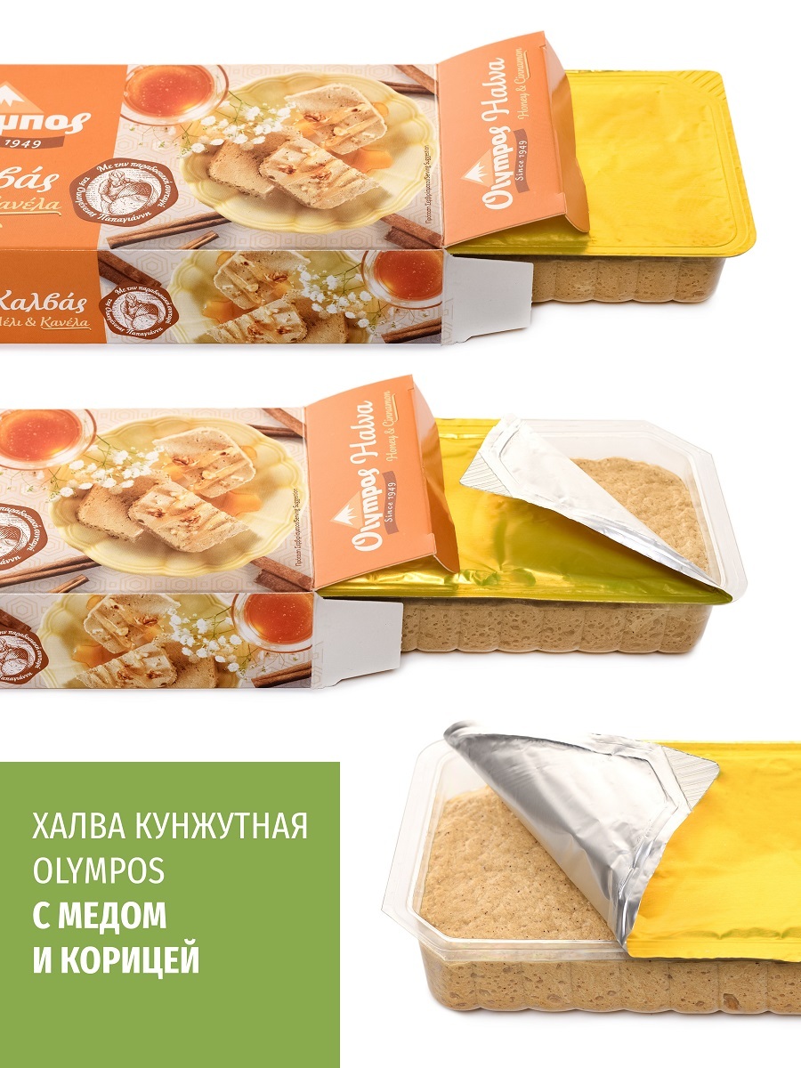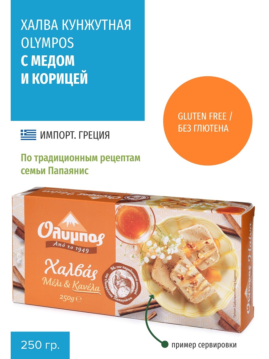 Халва кунжутная OLYMPOS БЕЗ САХАРА С МЕДОМ И КОРИЦЕЙ 250 гр., ГРЕЦИЯ