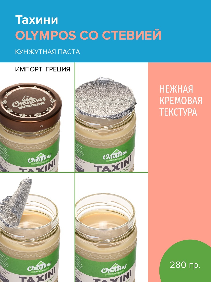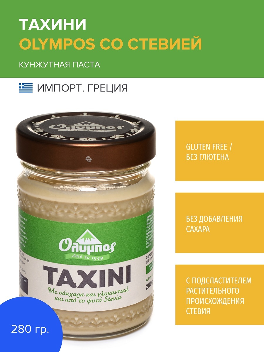 Тахини (кунжутная паста) OLYMPOS СО СТЕВИЕЙ без сахара 280 гр., ГРЕЦИЯ