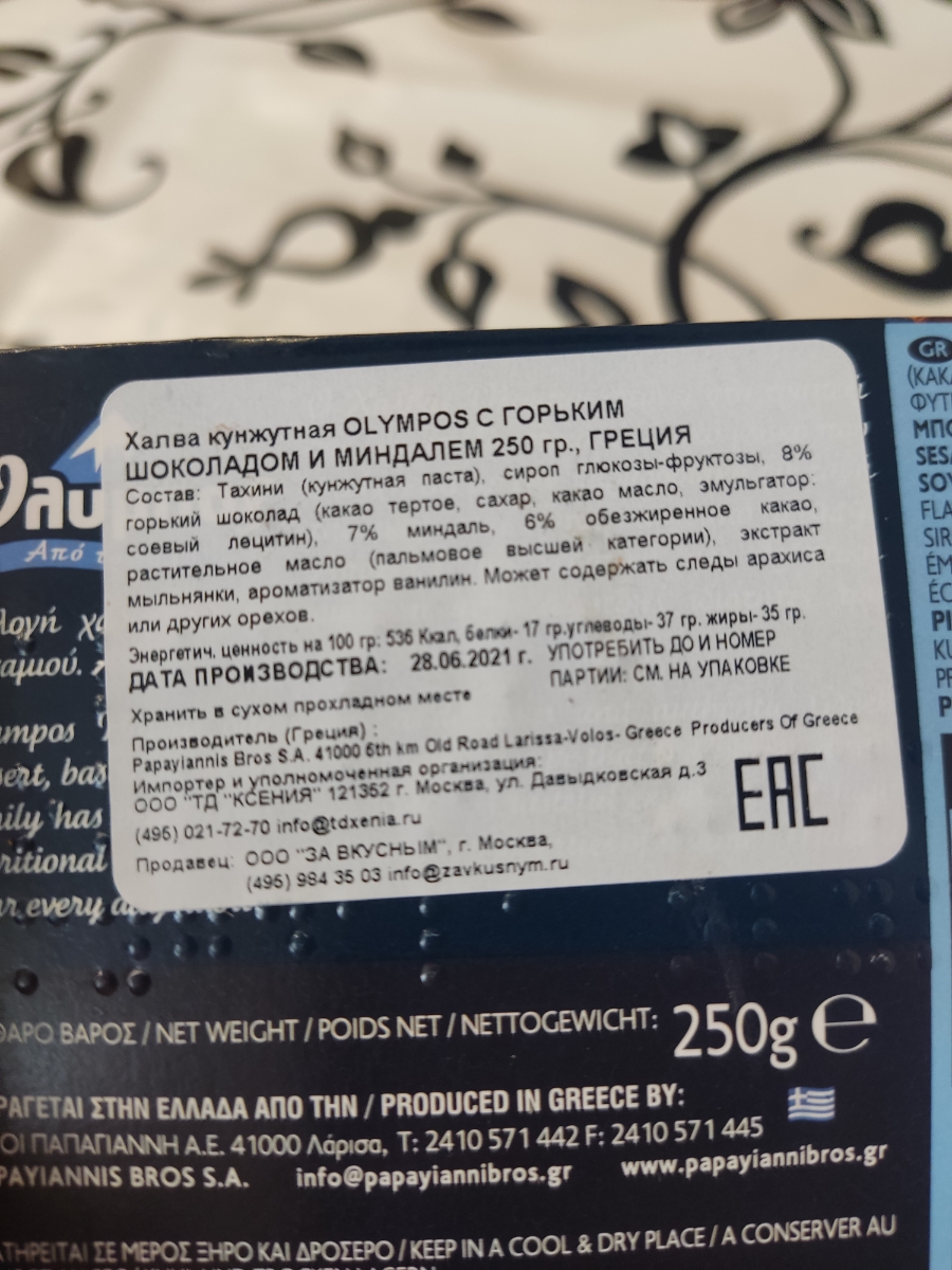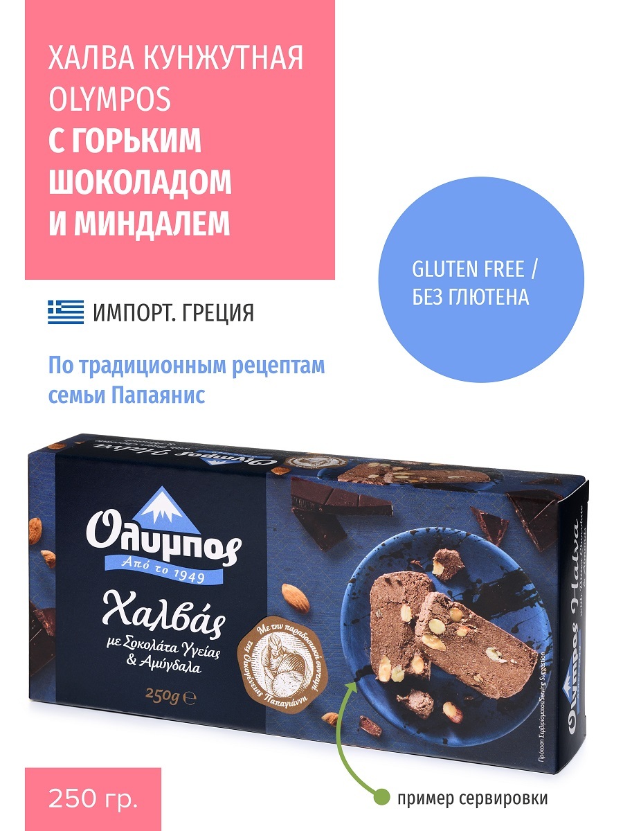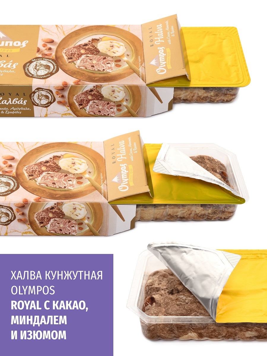 Халва кунжутная OLYMPOS ROYAL С КАКАО, МИНДАЛЕМ И ИЗЮМОМ 250 гр., ГРЕЦИЯ