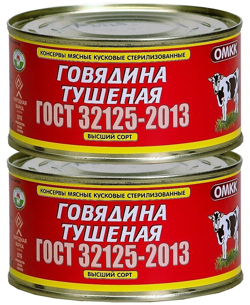 Говядина тушеная, ОМКК, ГОСТ, высший сорт, 525 гр., 2 банки
