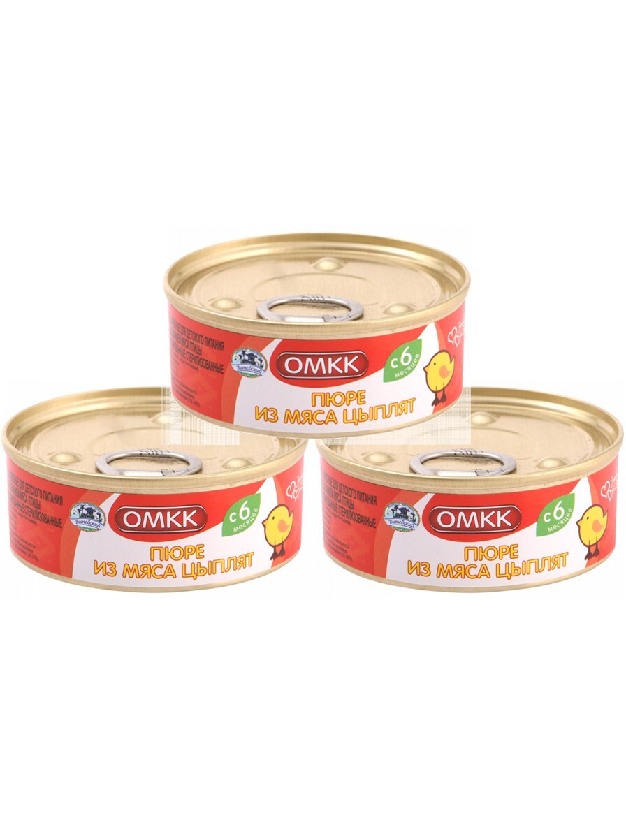 Консервы мясные Пюре из мяса цыплят, ОМКК, с 6 месяцев, 100 гр., 3 шт.
