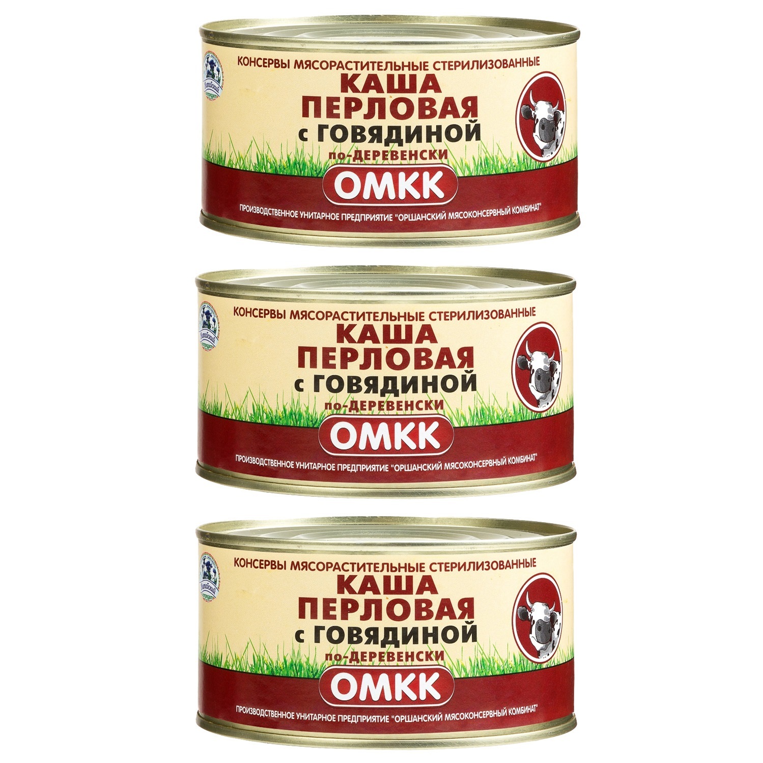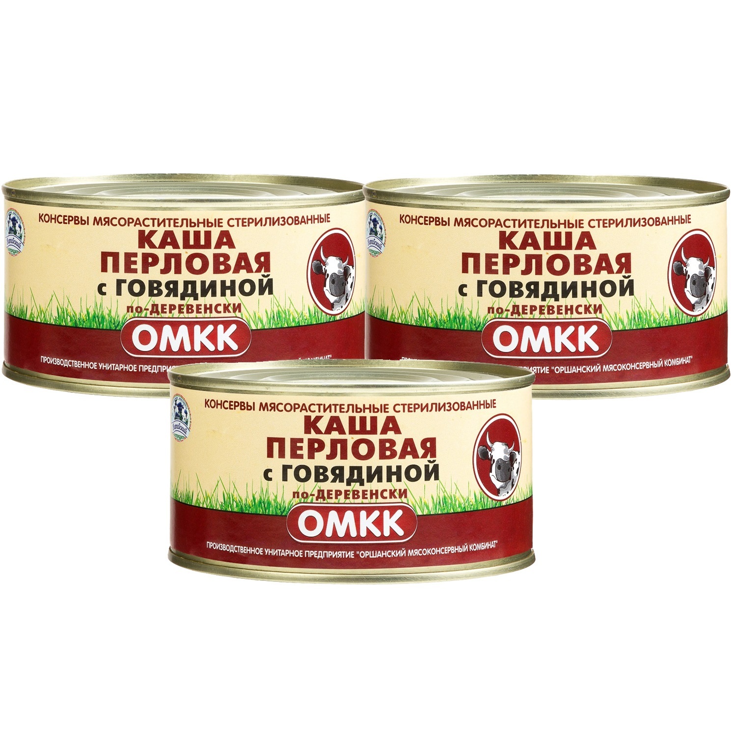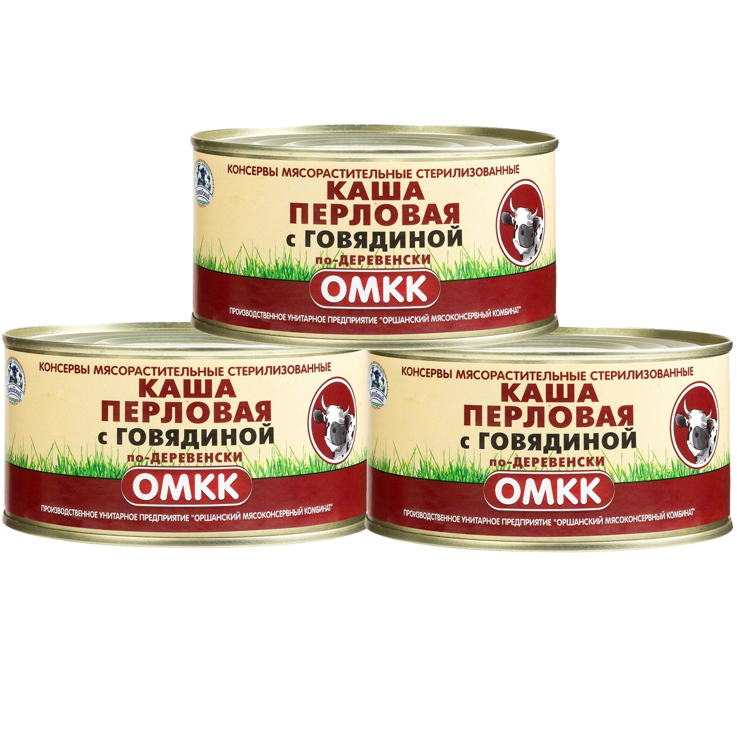 Каша перловая с говядиной по деревенски ОМКК, 3 шт по 325 г, Беларусь
