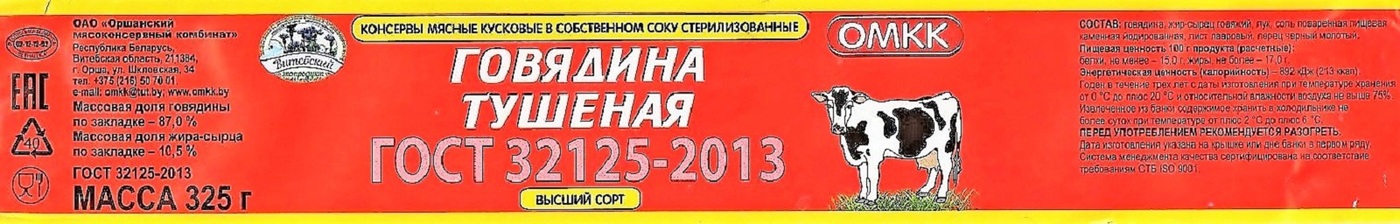 Говядина тушеная сочная изг. БЕЛАРУСЬ ОМКК 325г * 10 шт.