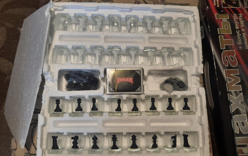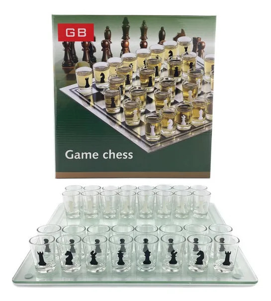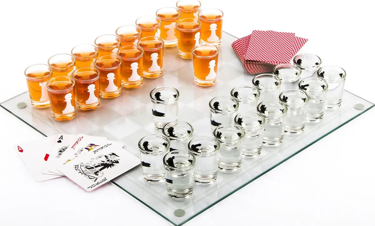 Шахматный набор из рюмок "Пьяные шахматы", 25х25см