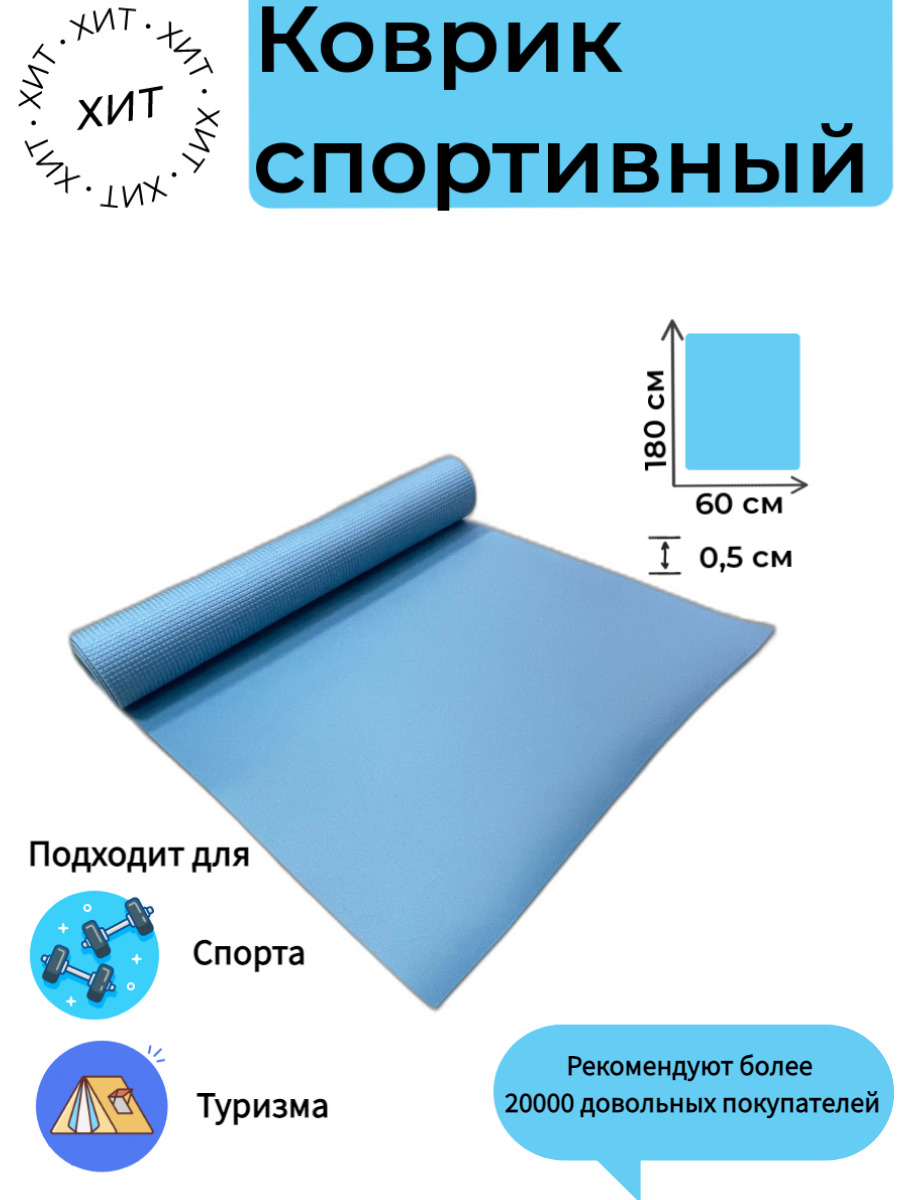Коврик спортивный для тренировок на улице и в зале 1800х600х5 мм голубой
