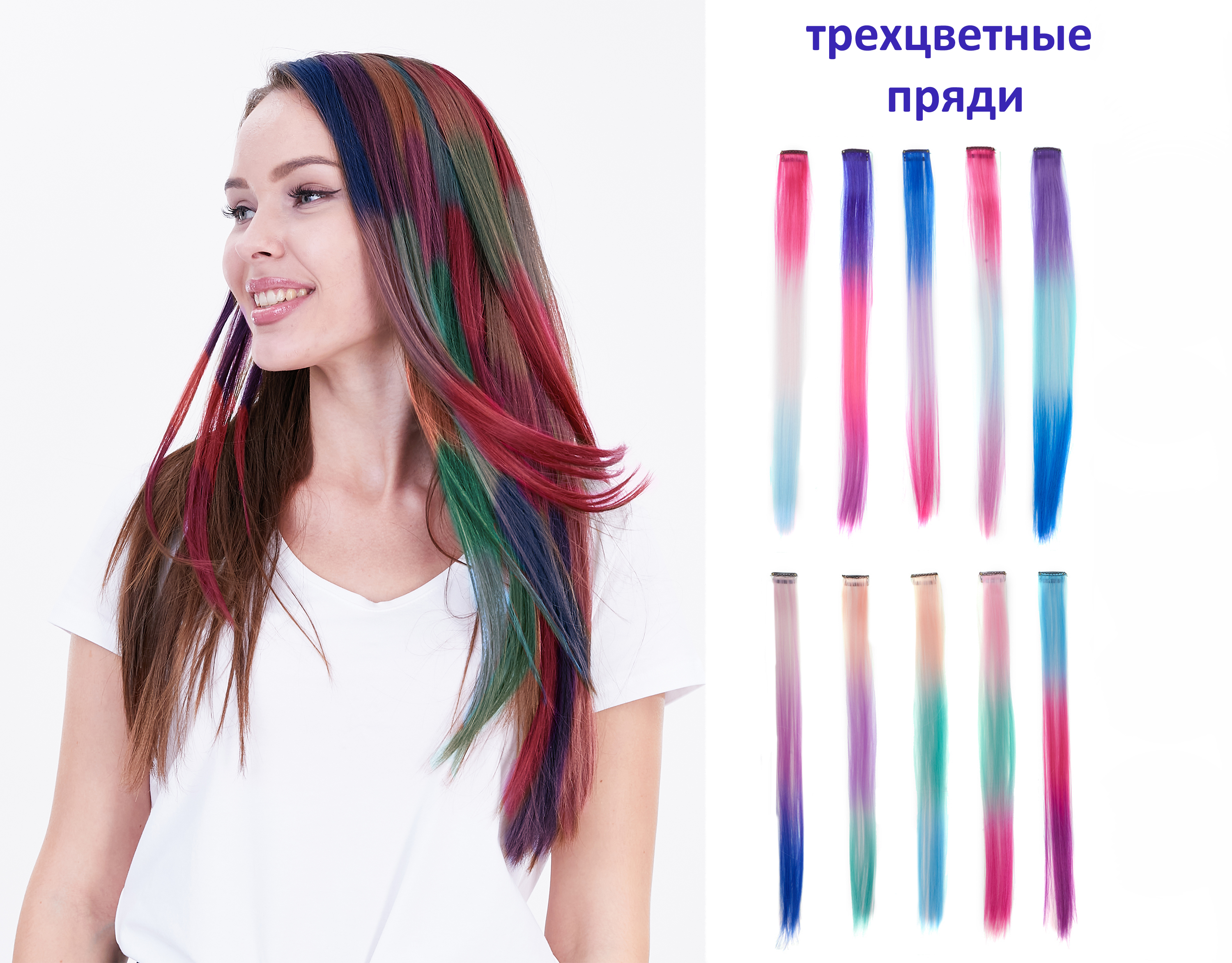 onenine ladies Цветные пряди волос, 10 штук (10 цветов, трехцветные)