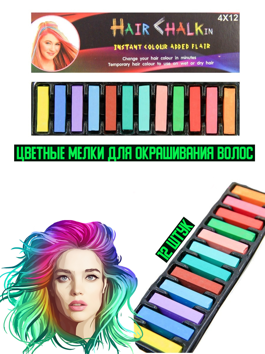 Цветные мелки для волос 12 цветов в наборе / Краска для волос детская