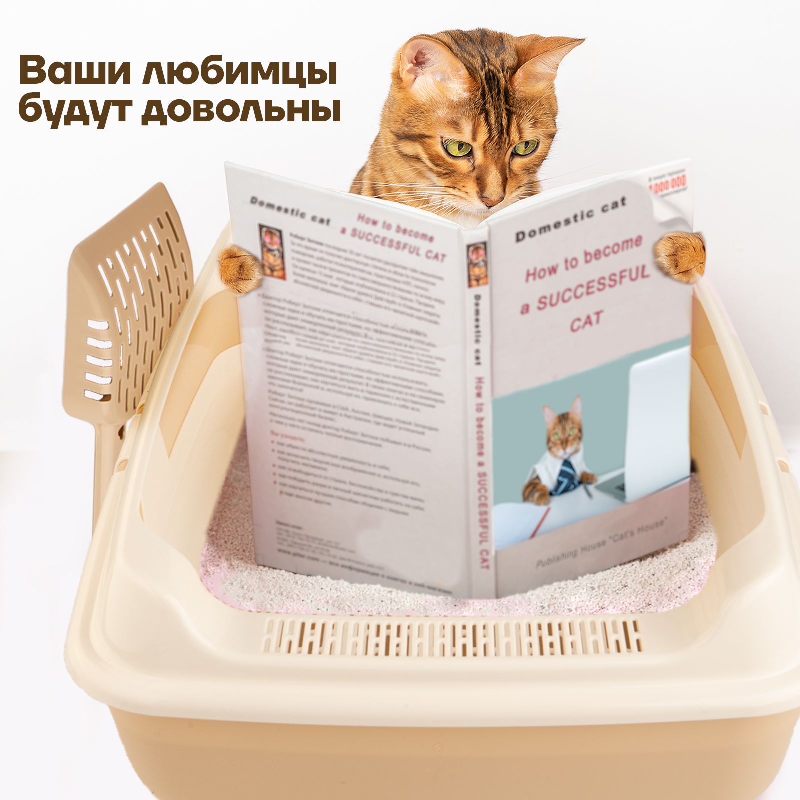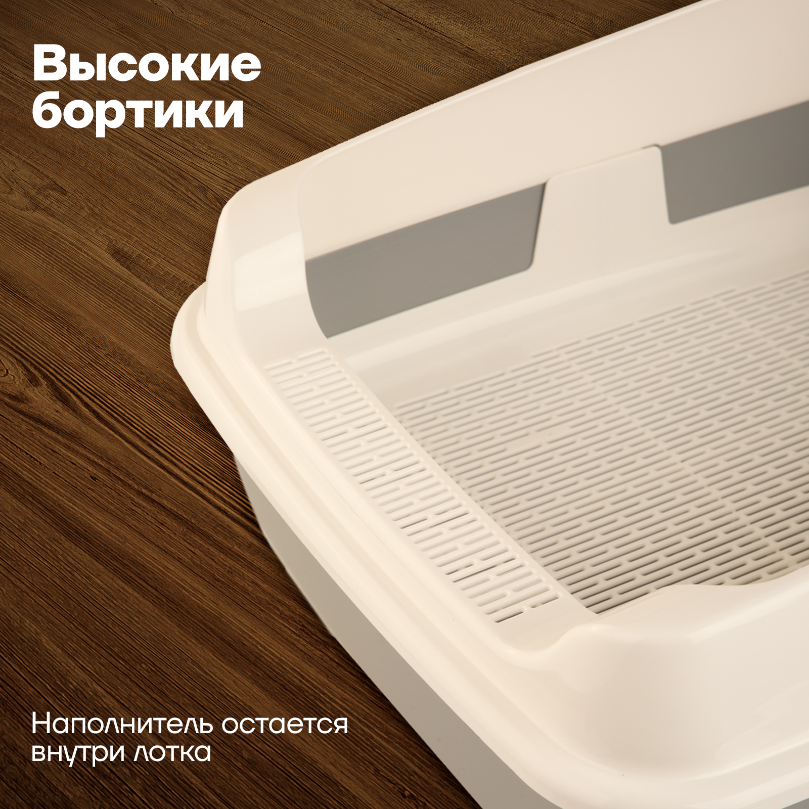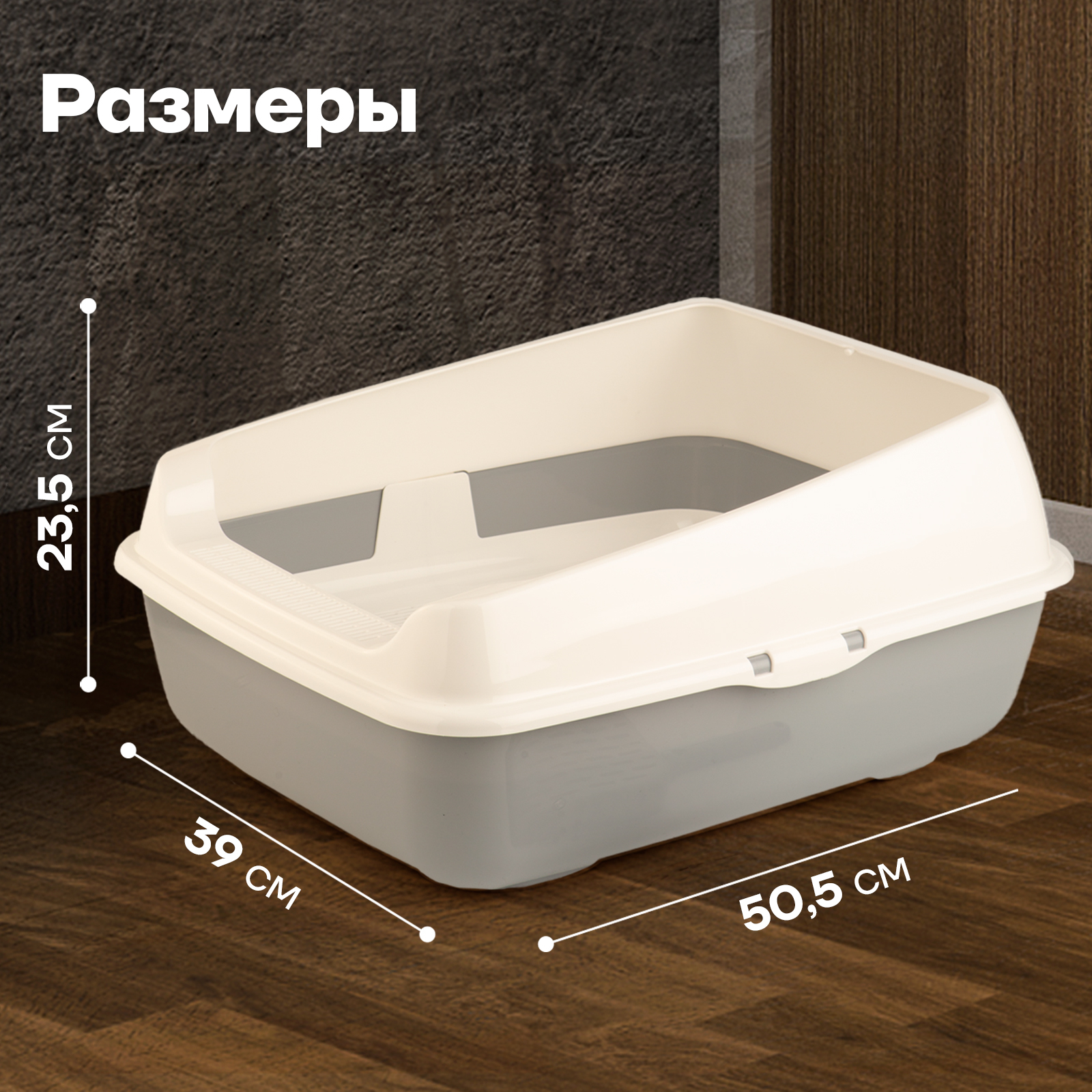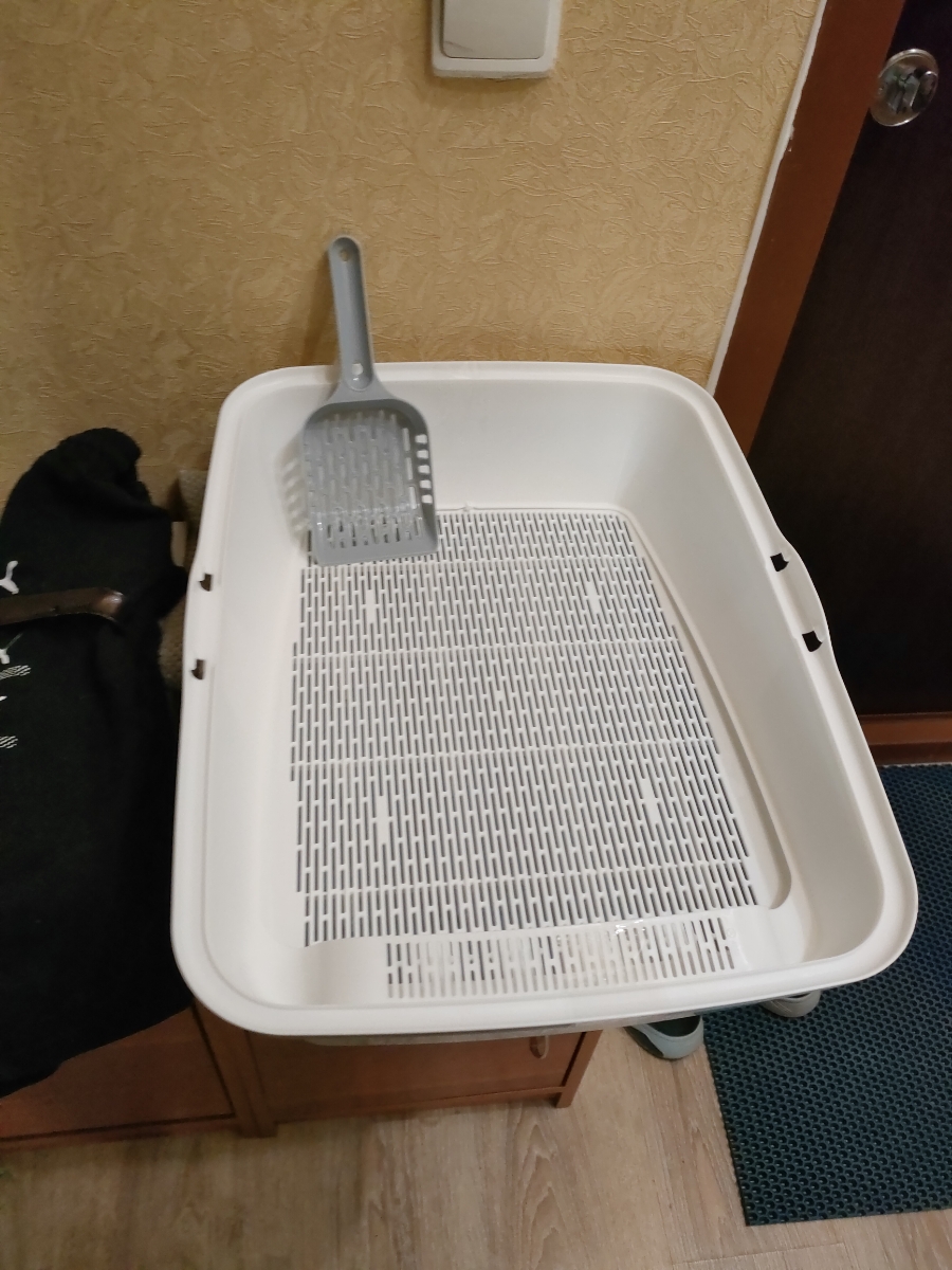 Набор/ Лоток для котов и кошек с высокими бортами, сеткой, совком/бежевый/для кота и котика