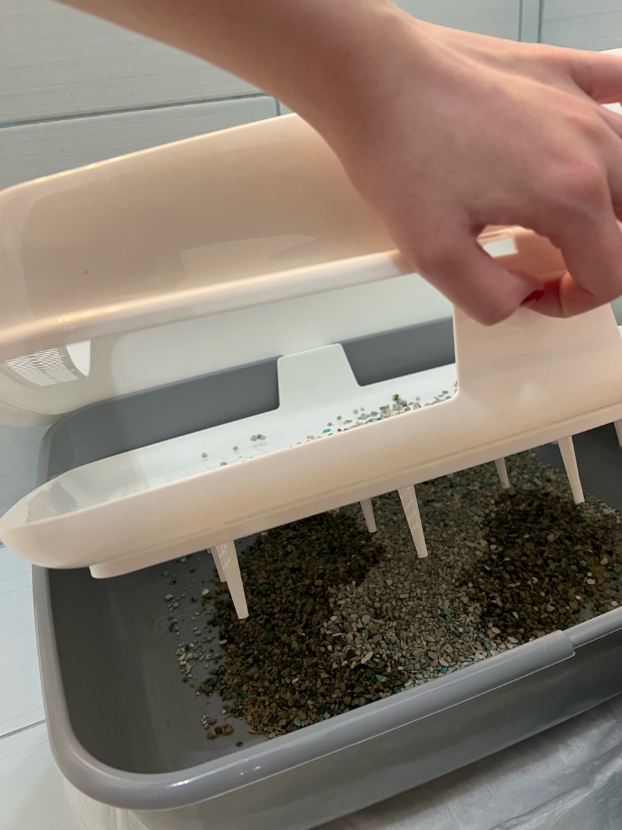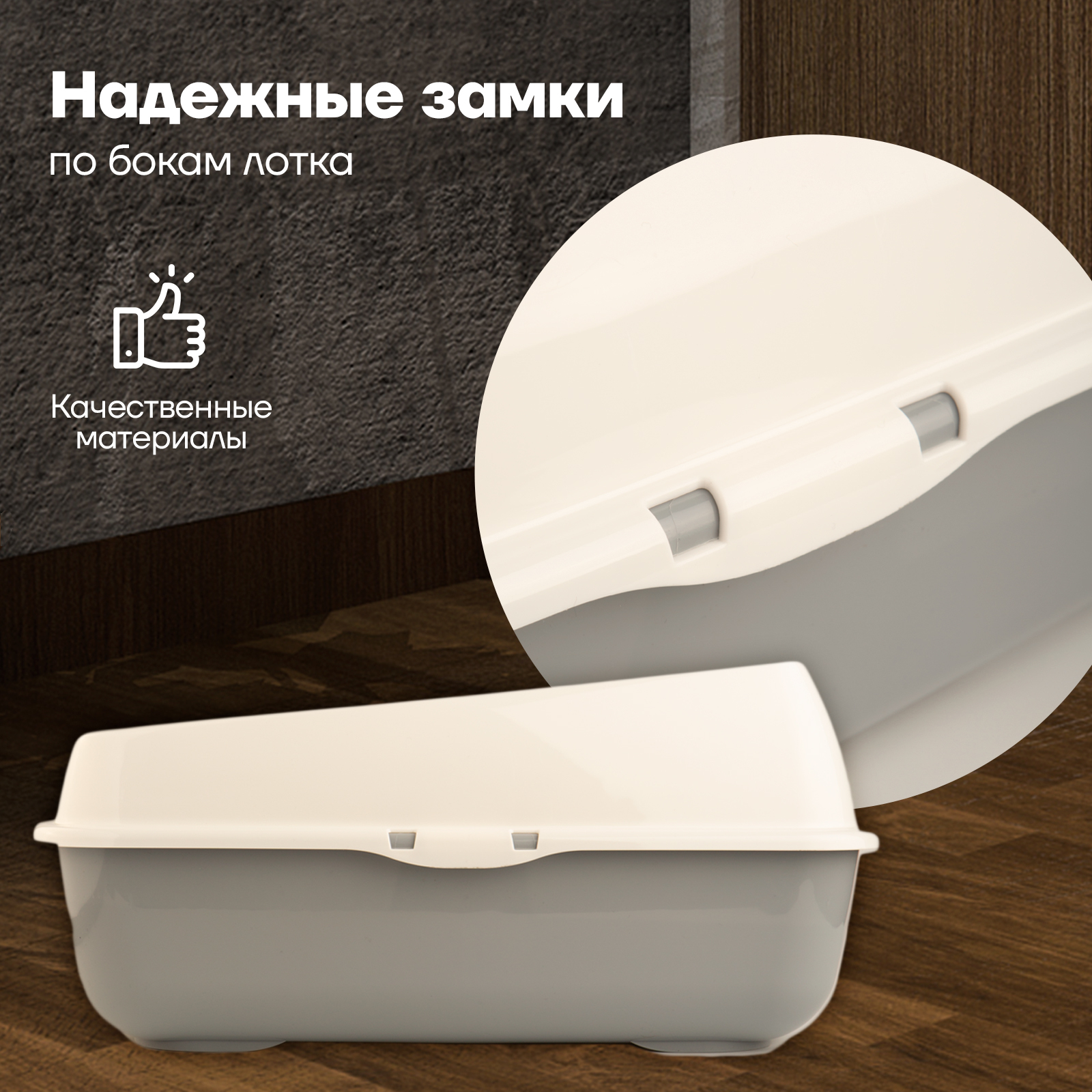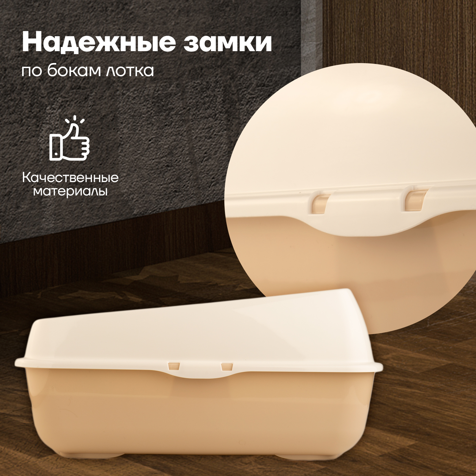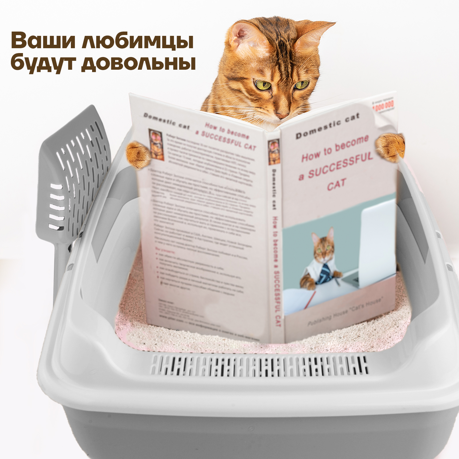 Набор/ Лоток для котов и кошек с высокими бортами, сеткой, совком/бежевый/для кота и котика