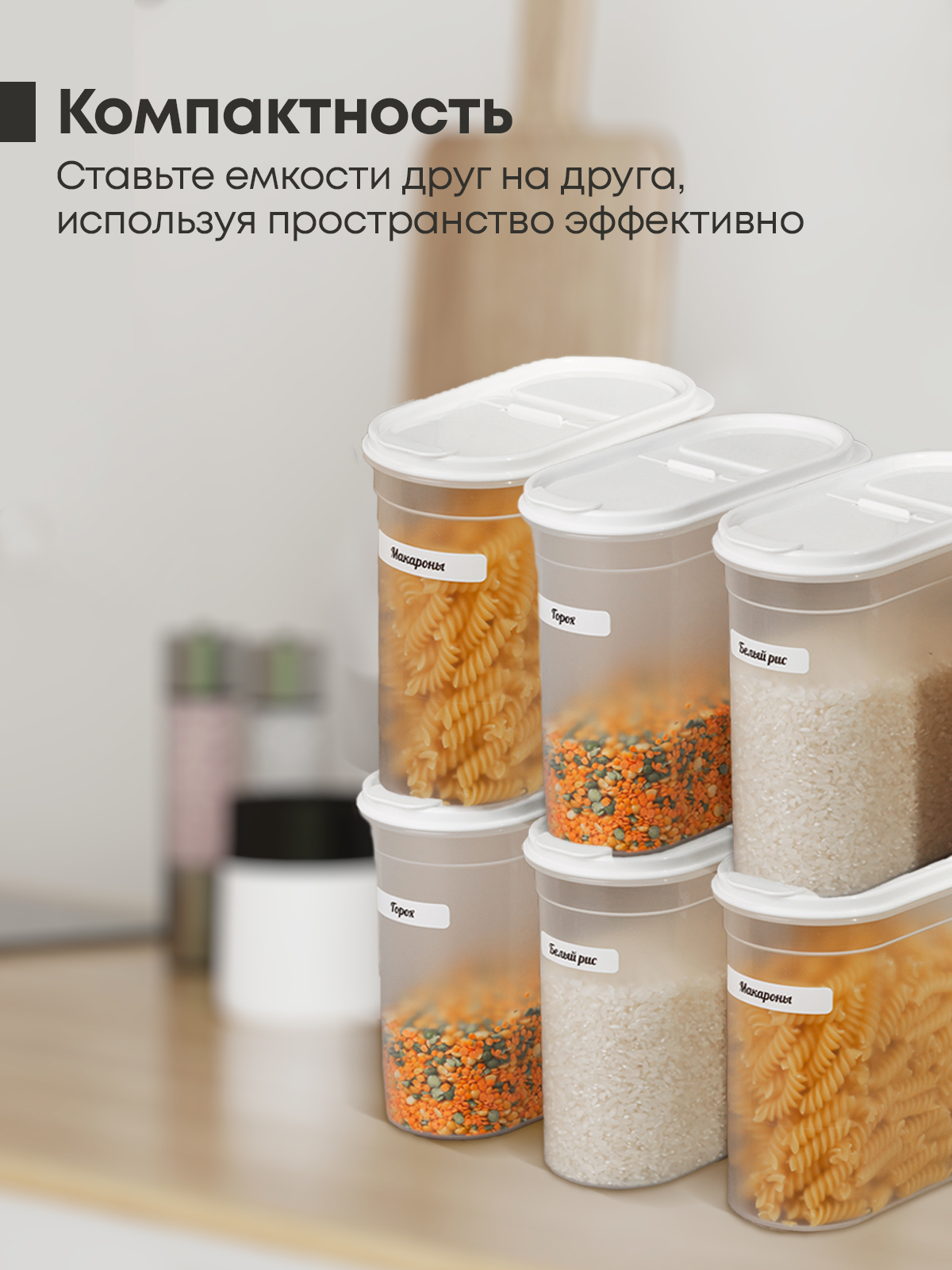Диспенсер для продуктов, Контейнер вакуумный для пищи OnHome "Домашней волшебнице", 1650 мл, 6 шт