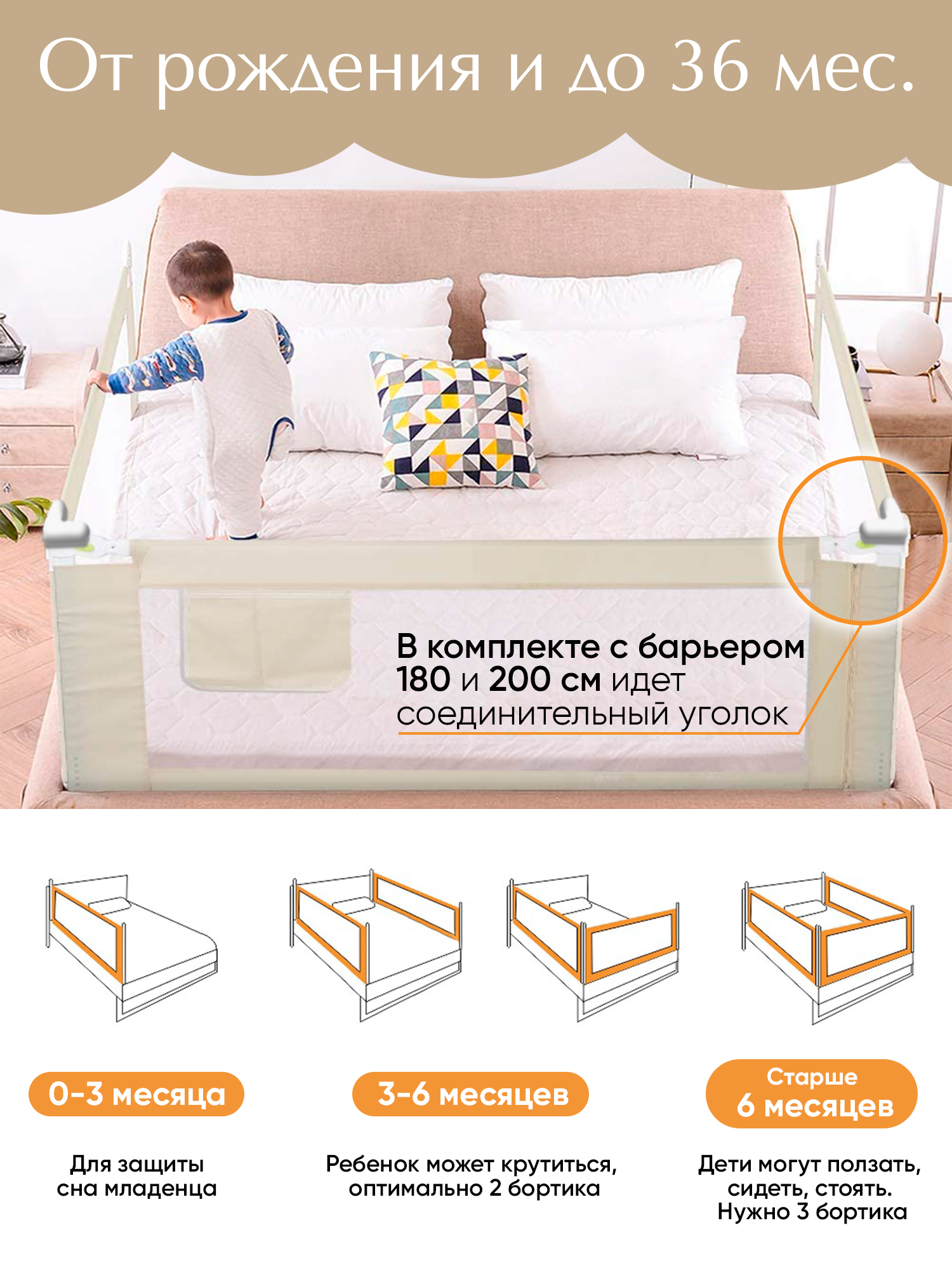 Барьер для кровати 200х98 см (1 шт.) / Барьер защитный для кровати / Барьер защитный для малышей