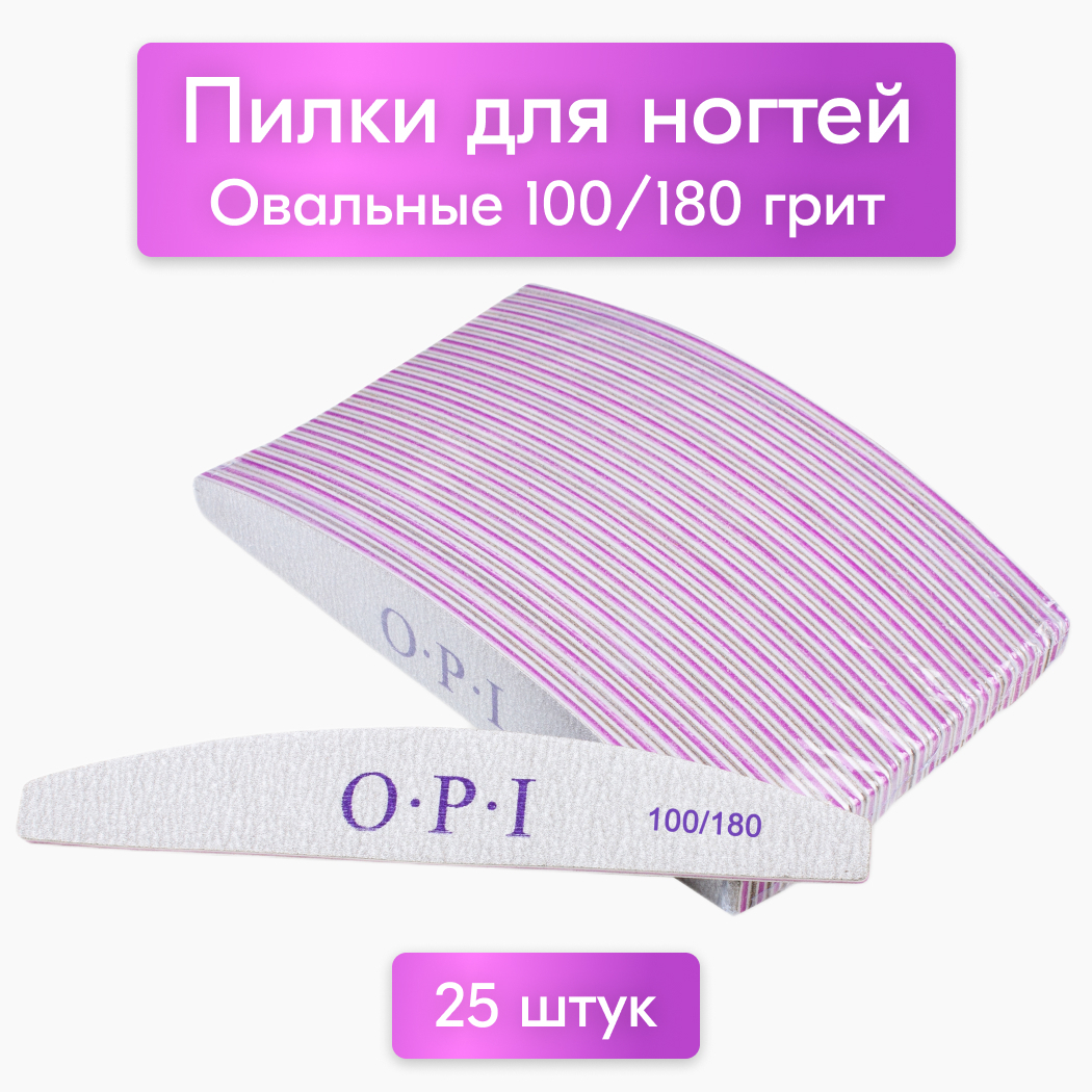 NailsProfi, Пилки для ногтей OPI, овал, лодочка, полумесяц, 100/180, 25 шт, набор, пилки, пилочки для маникюра