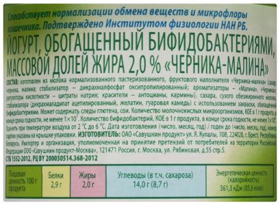 Йогурт ""Оптималь" черника с малиной 2%,120г